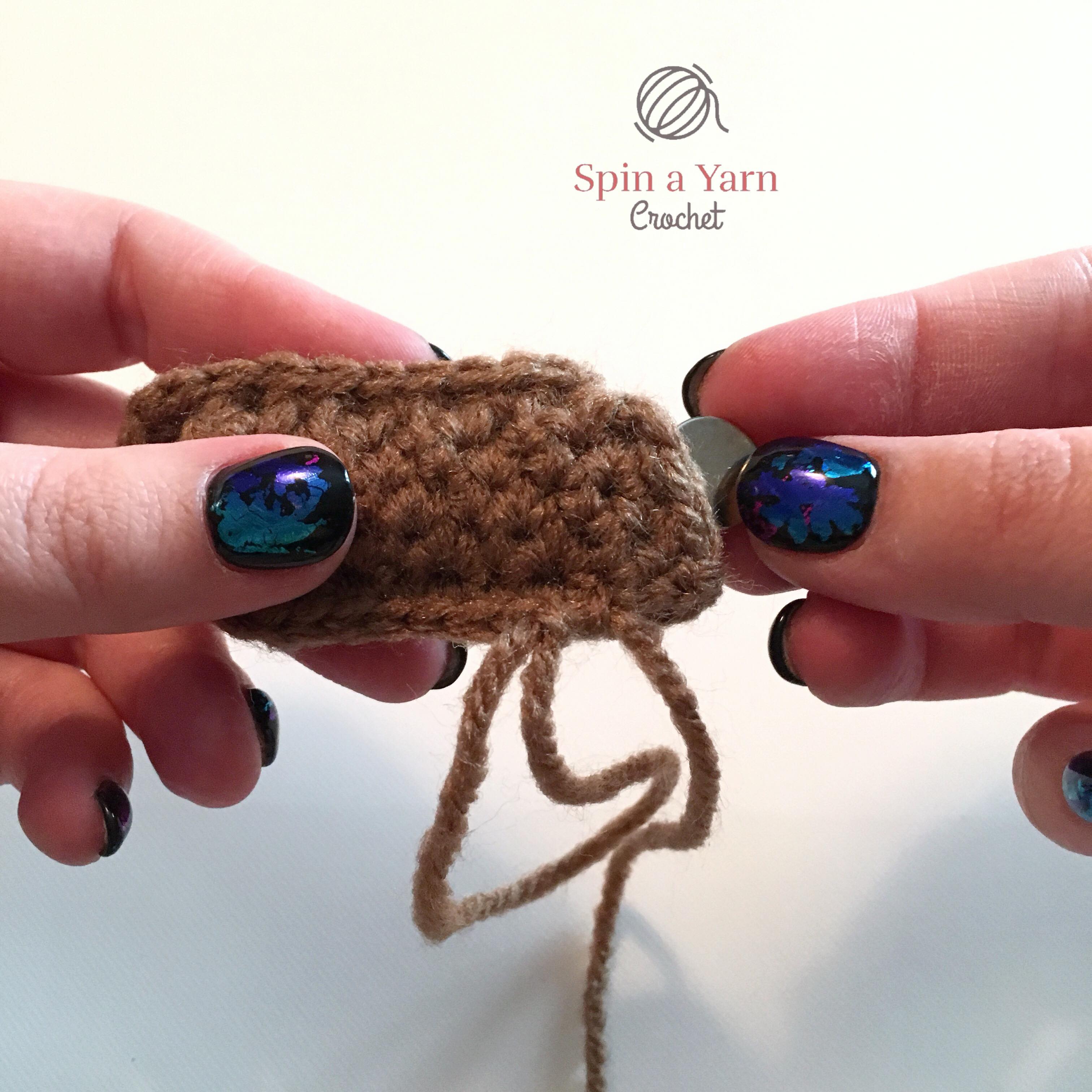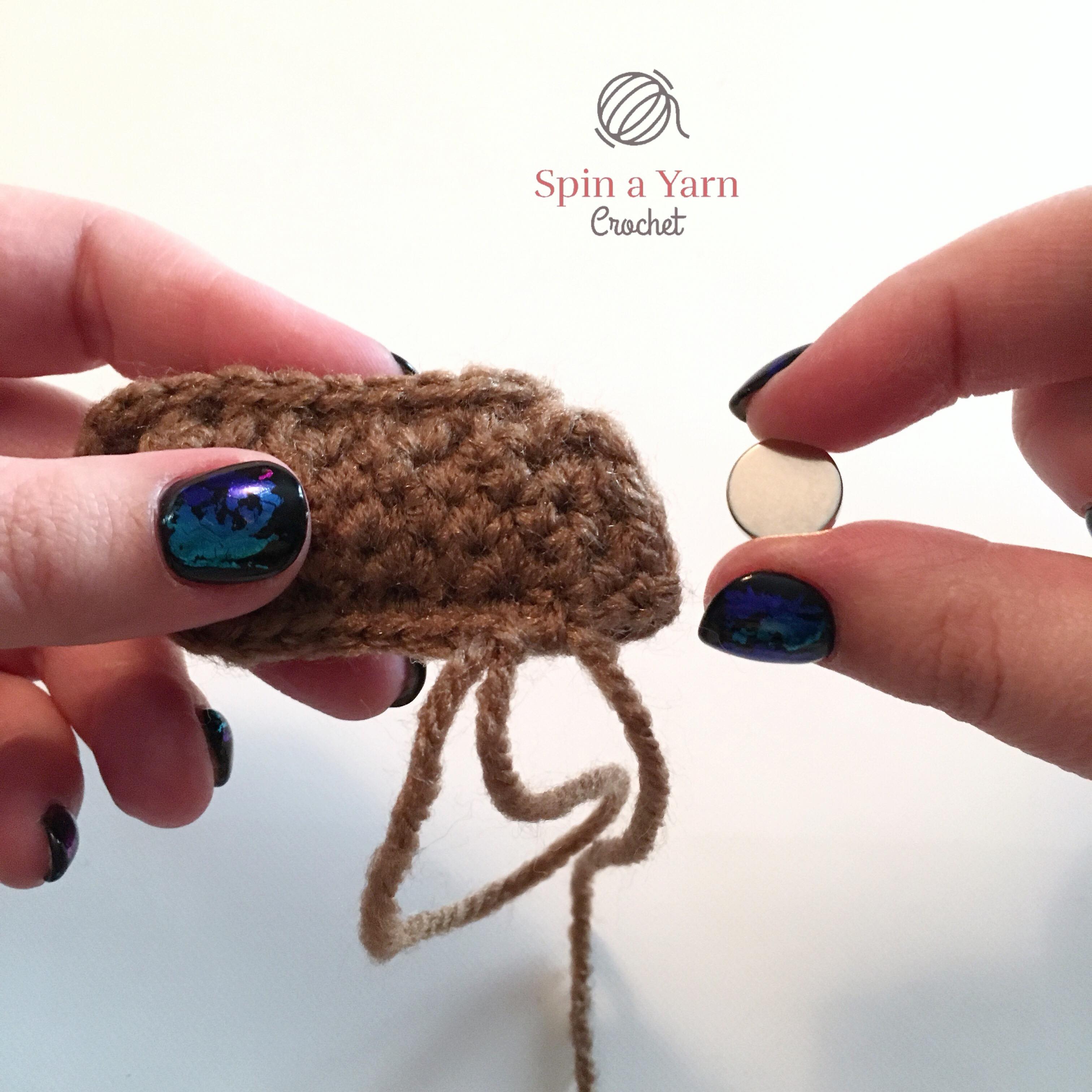 Don’t close it up yet! If you want your otters to be able to hold hands, insert a magnet into the end of the paw now, then continue crocheting around and close with a slst to first st. Tie off and poke the yarn tail back inside. Repeat all of the above for the second arm.