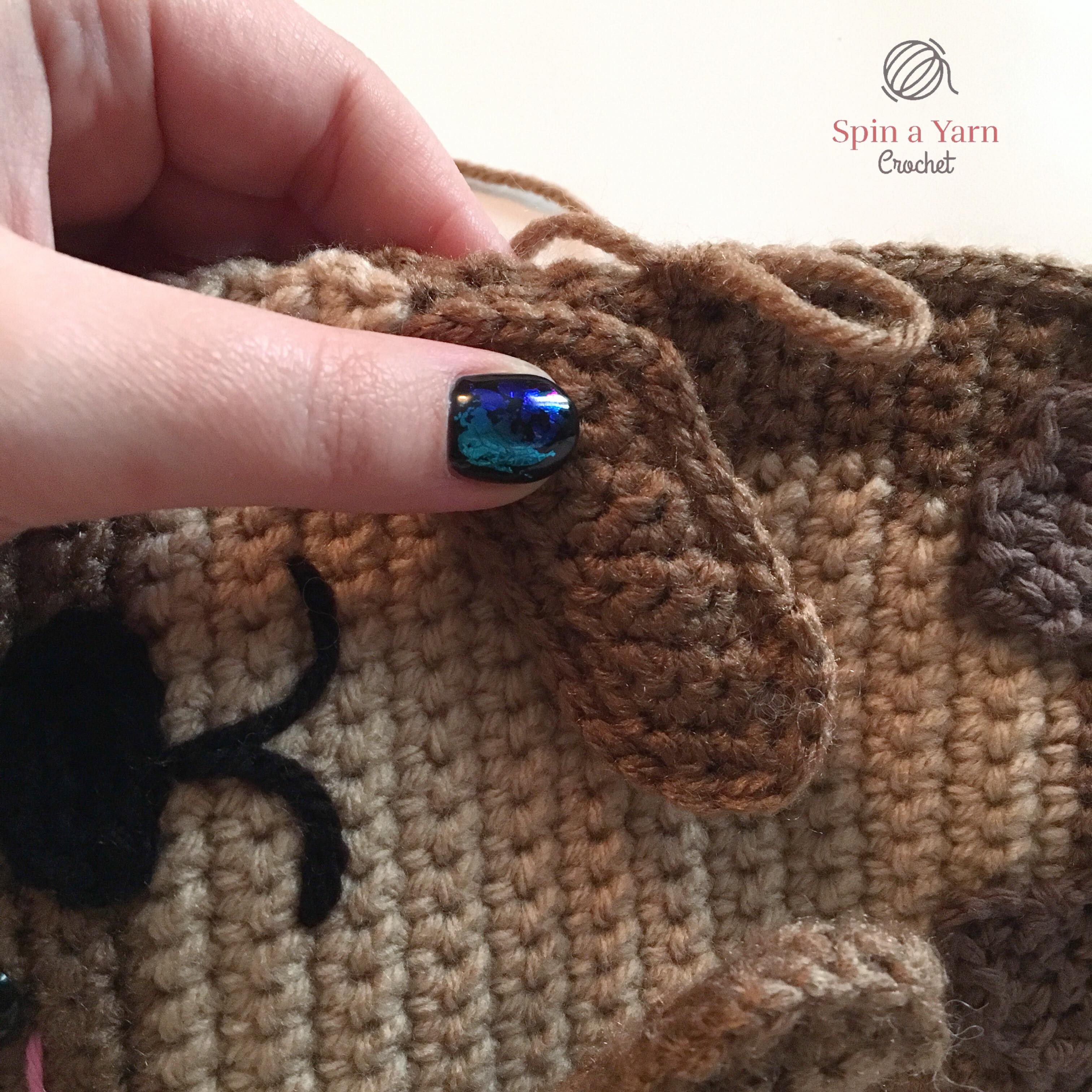 Continue crocheting around. When you get to the ear, simply crochet in the stitches of the front panel only, since this portion is already sewn shut.