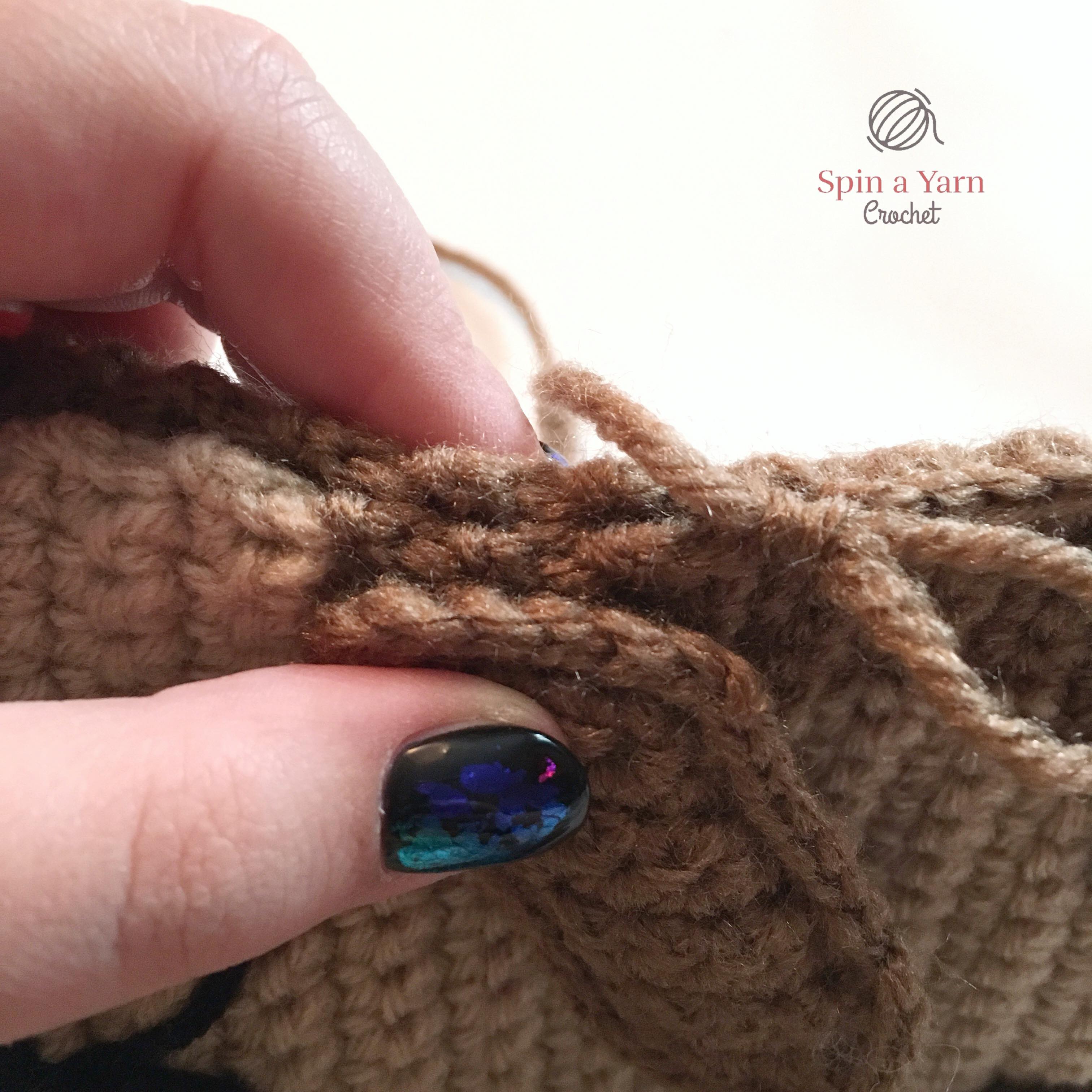 Continue crocheting around. When you get to the tail, simply crochet in the stitches of the front panel only, since this portion is already sewn shut.