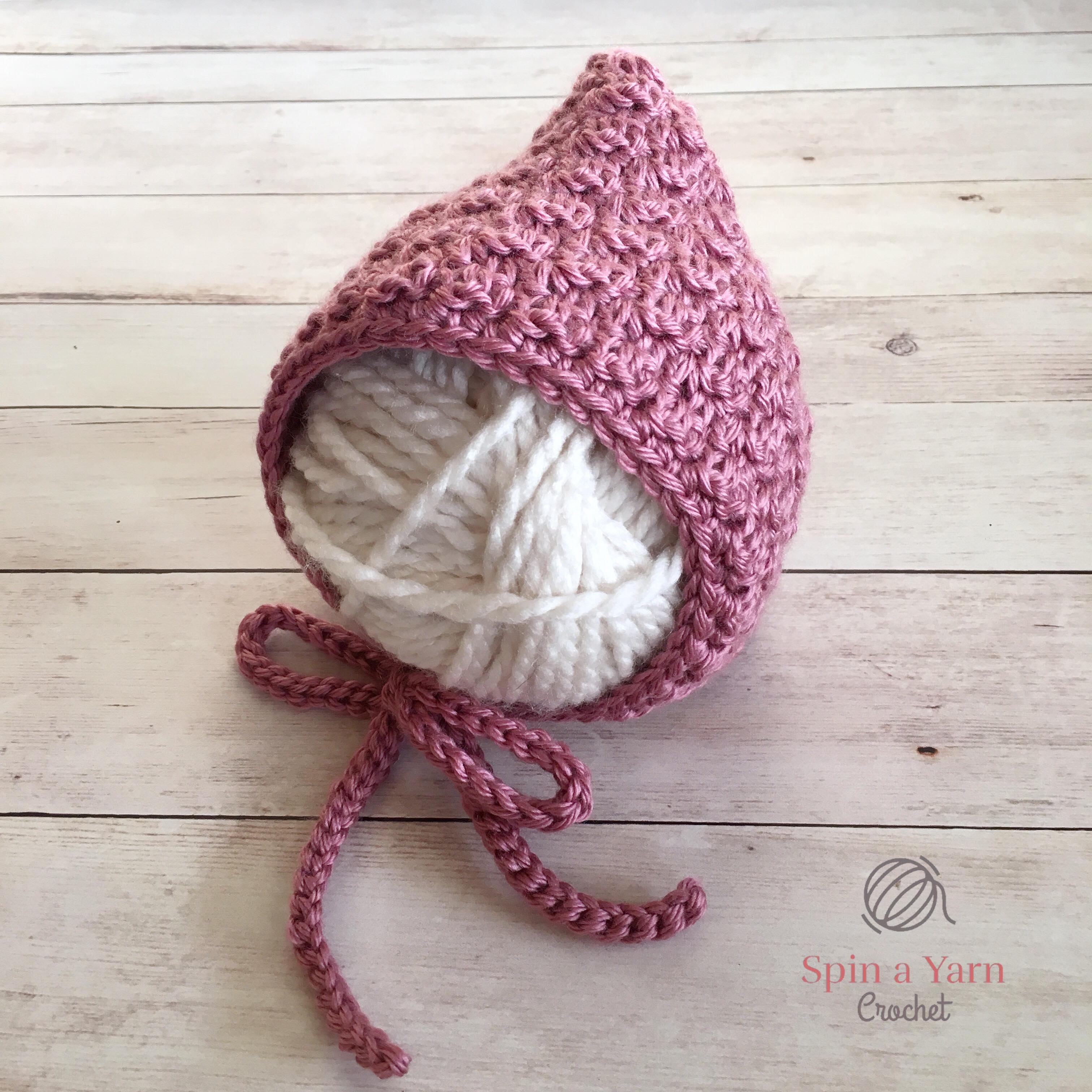I also crocheted a little bonnet using Caron Simply Soft in Plum Wine and one of my favourite newborn bonnet patterns by KT and the Squid (I also used it awhile back to make this Newborn Deer Bonnet).