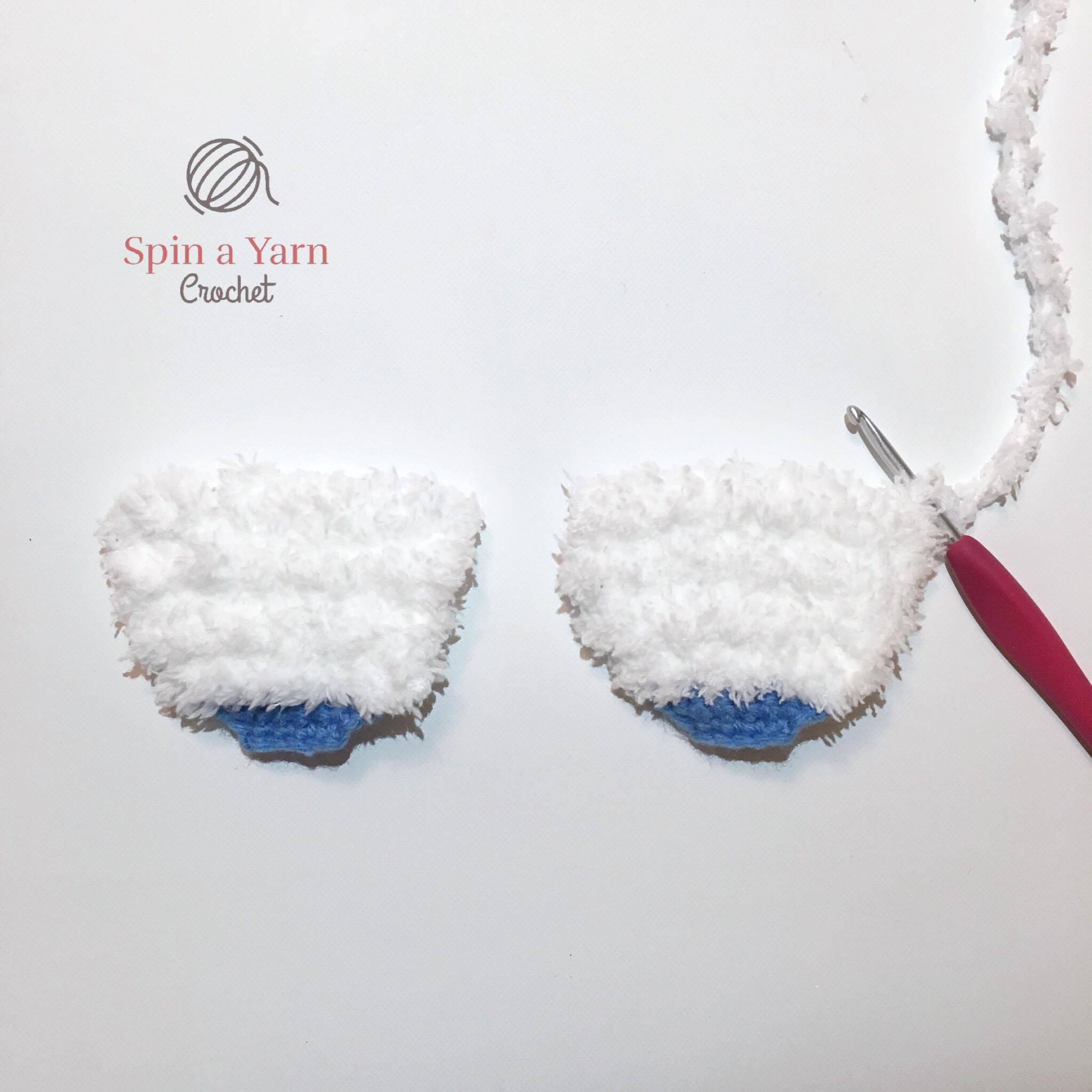 Due to the colour-changes, you will have at least two skeins or balls of yarn attached to your project at once. For example, I opted to use two balls of white, one for each side of the head. I did this by taking one skein of yarn and separating it into two smaller balls. This cuts down significantly on having to carry your yarn.