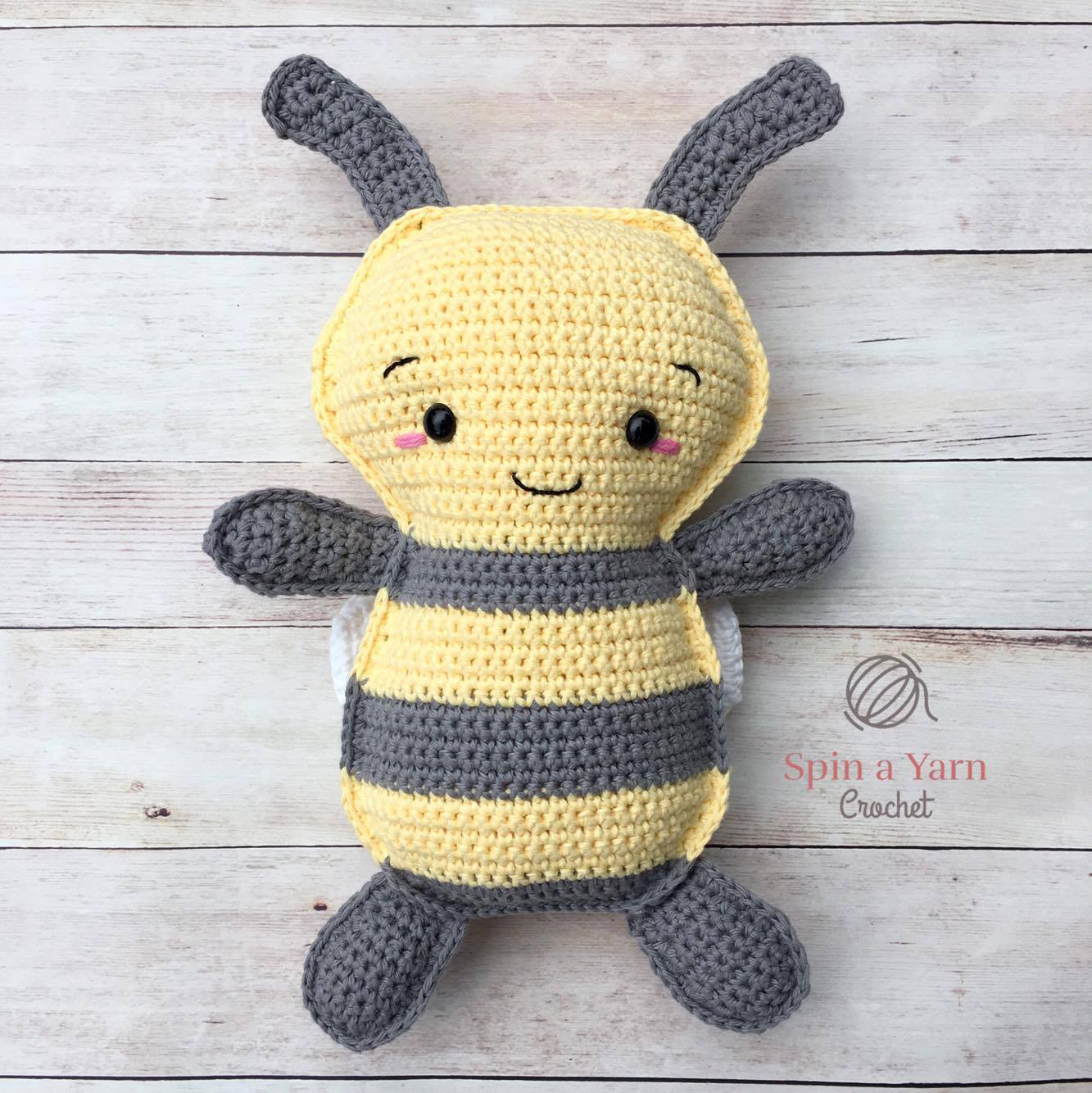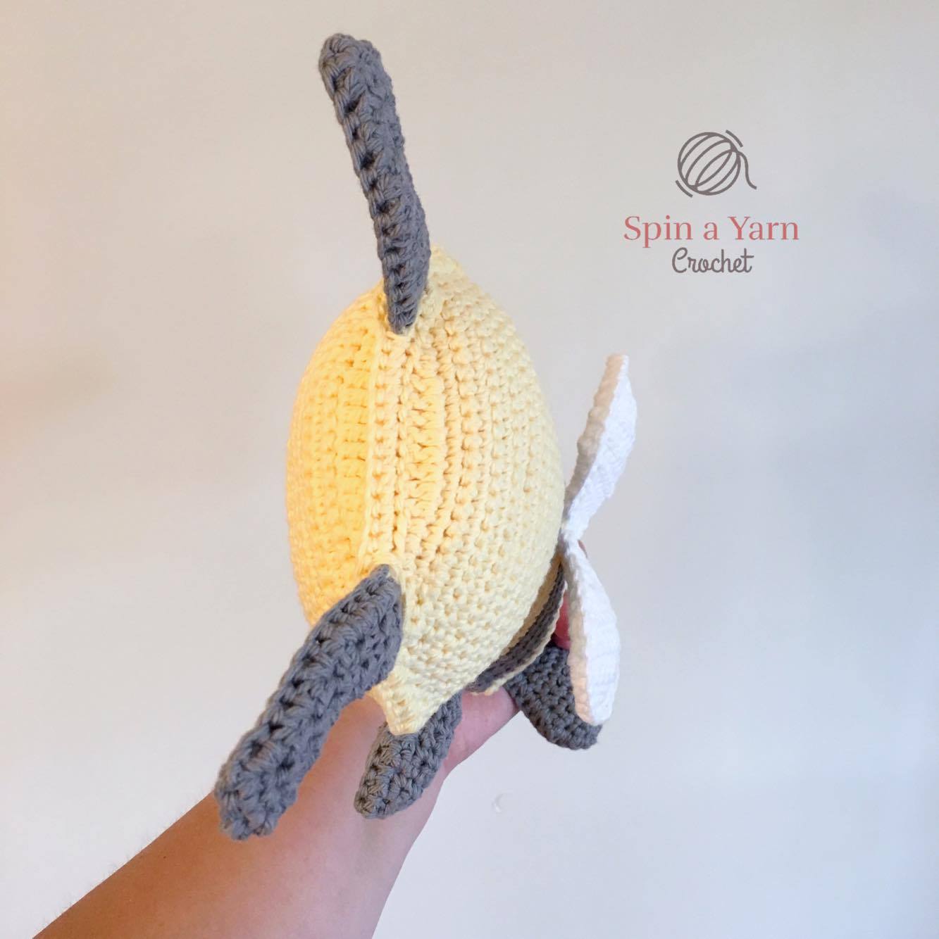 If this Bumble Bee looks a little familiar to you, you won’t be surprised to learn that I adapted the pattern from the Ragdoll Lion to make her! With some minor changes, I was able to use the pattern for the body panels as the base to transform a fearsome lion into a buzzing bee.
