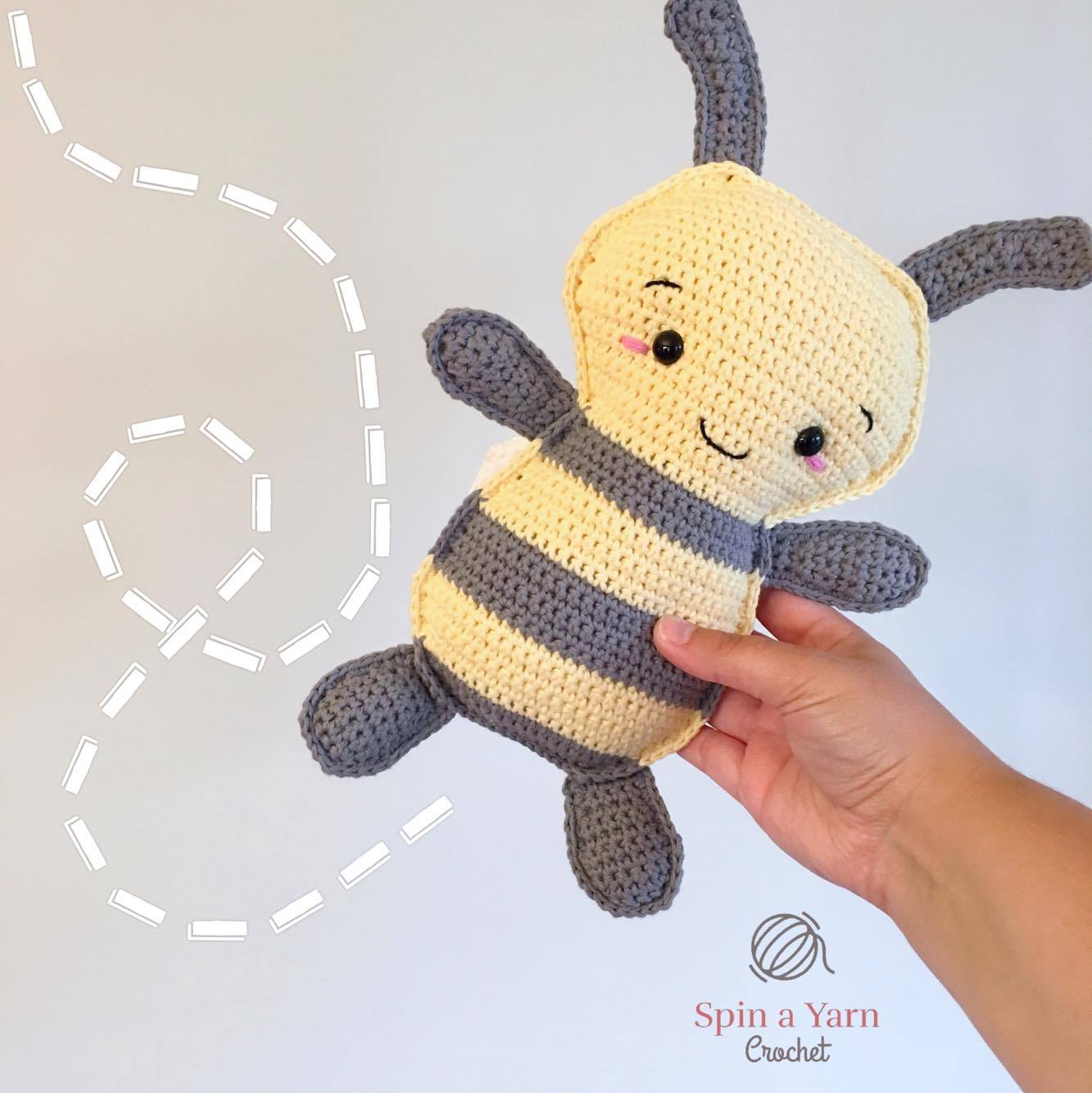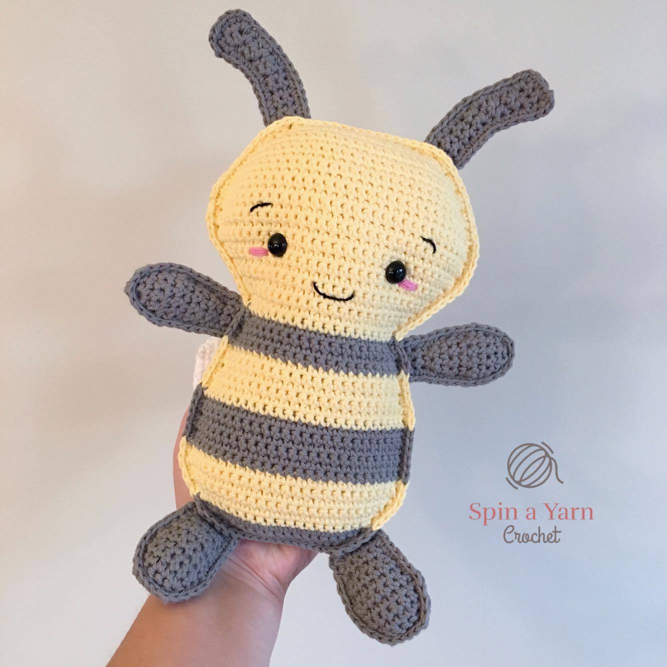 Anyway, I’m back to crocheting again after an eventful weekend! I have another cute little critter to bring you…a sweet little Bumble Bee! 🐝 I decided to go with soft, pastel colours for this bee, which I think would make it a perfect fit for a nursery, either as a cuddle buddy or as wall decor. Maybe pair her with a beautiful soft grey baby blanket to match? Perfect baby shower gift!
