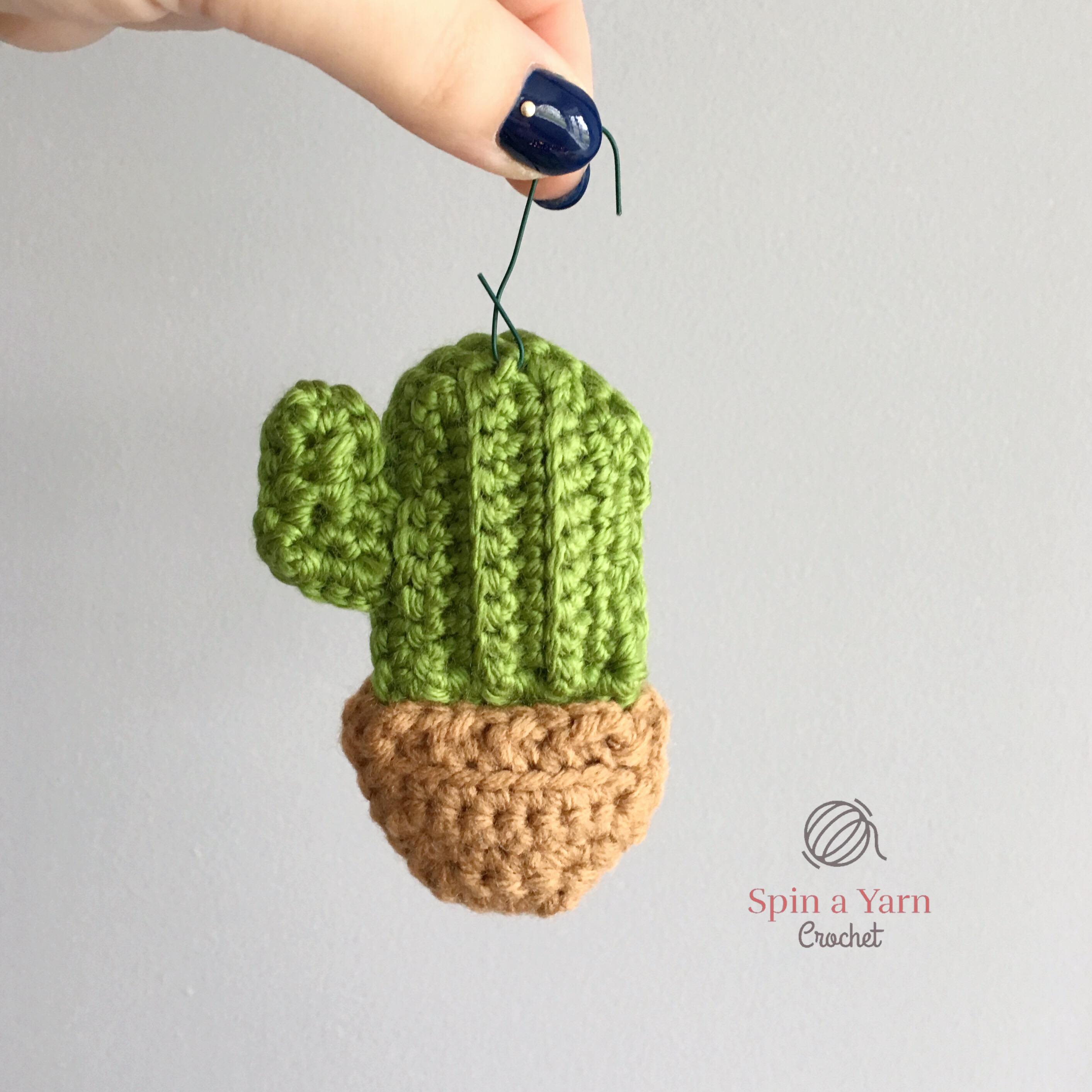 Lightly stuff your cactus when you reach the top. Continue crochet across, topping up stuffing as necessary and close with a slst to first st and tie off. Poke the yarn tails back inside the piece.