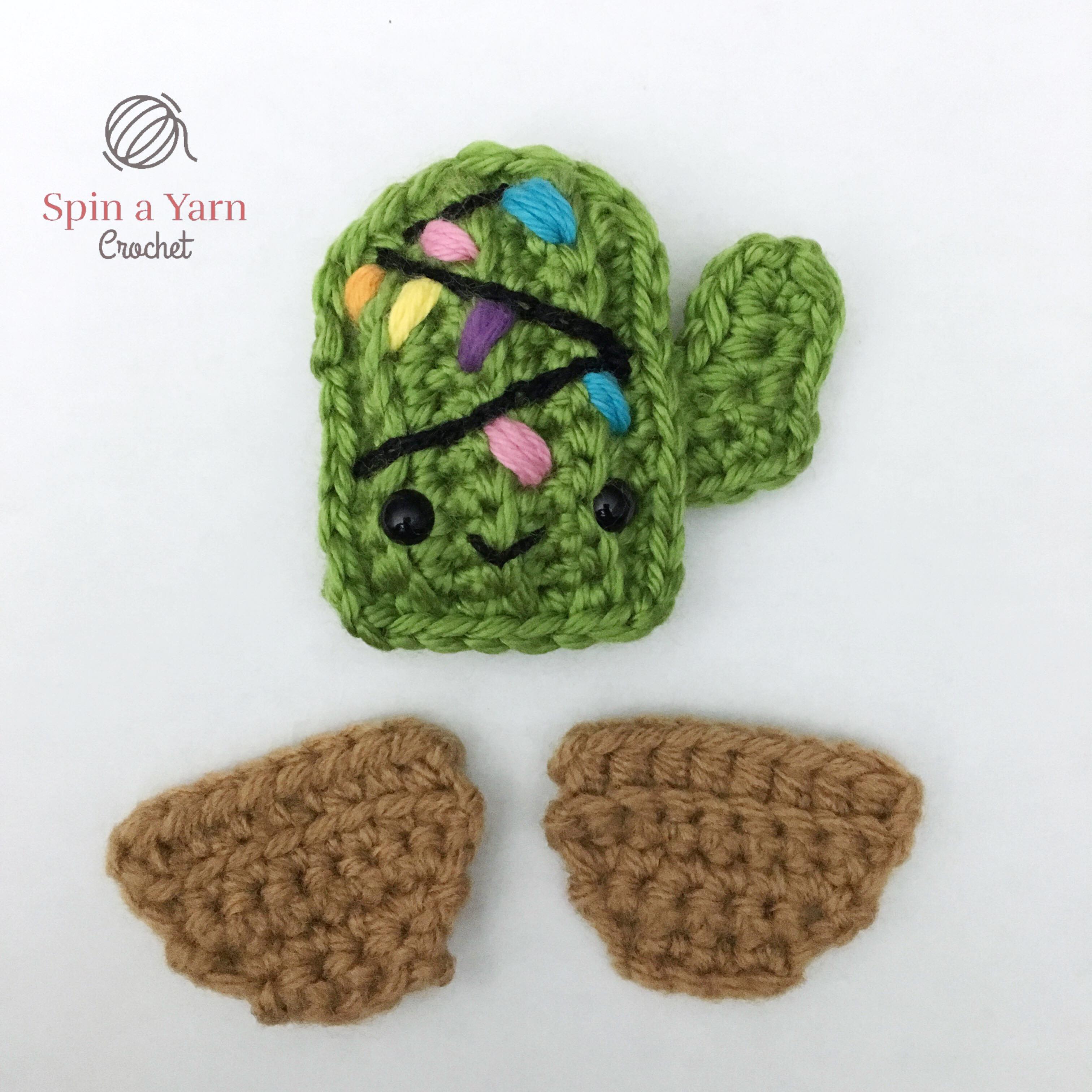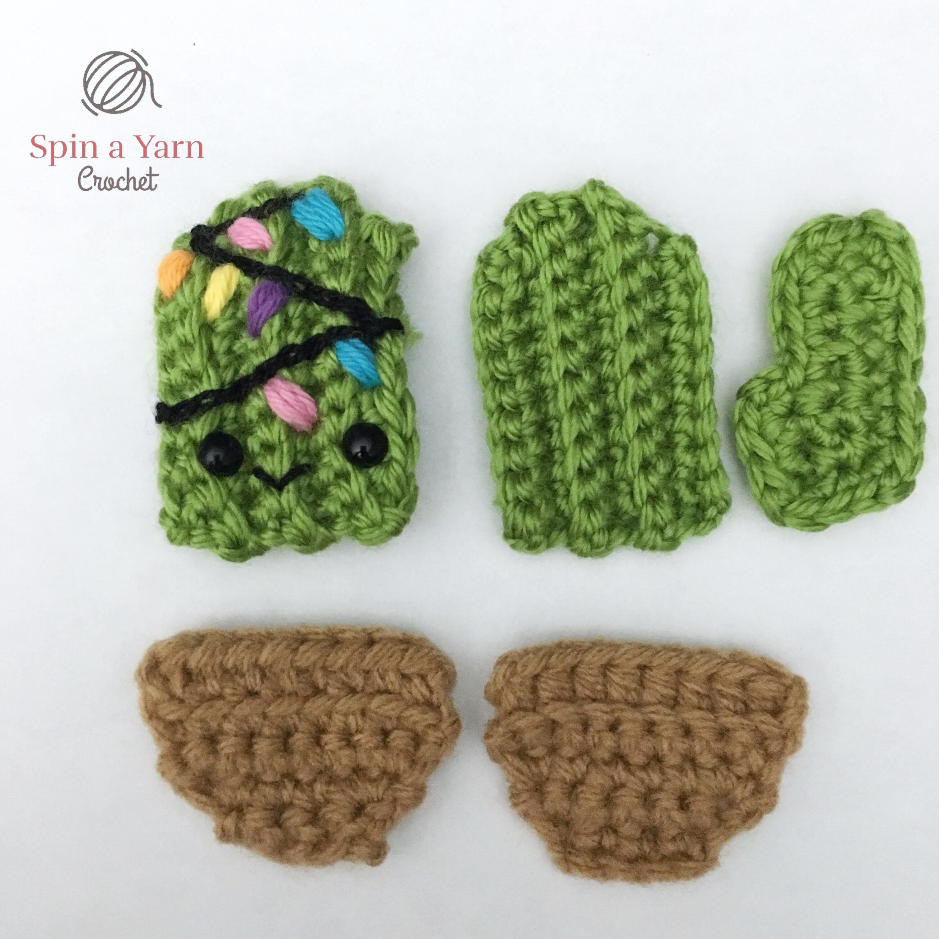 Our festive little cactus is worked flat as usual, and then joined together in the same style as my Ragdoll patterns. The pattern is made up of 6 separate pieces, plus the lights which are stitched on.