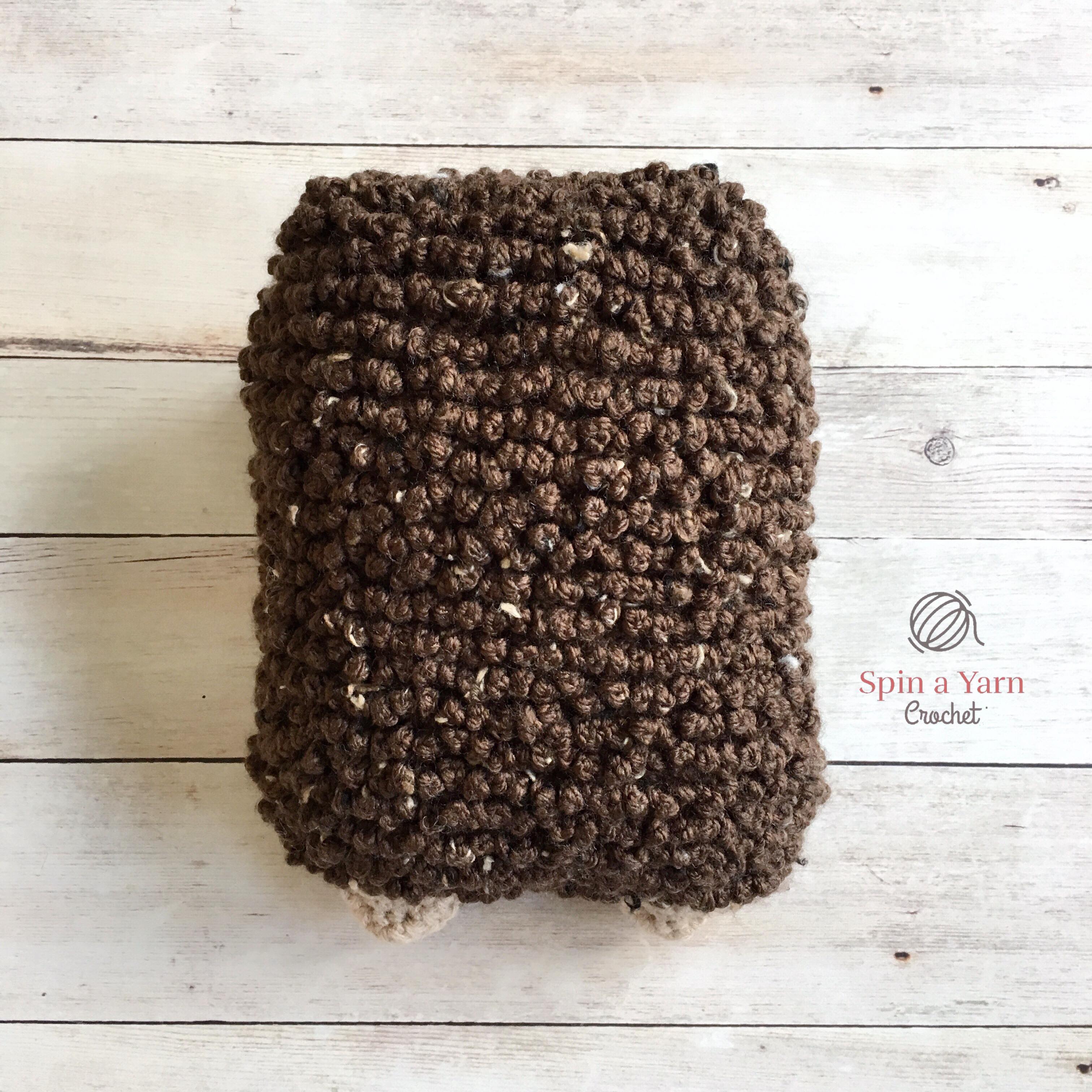Switch back to Brown when you reach the other side. Continue crocheting up the body. Stop about half way up the body.