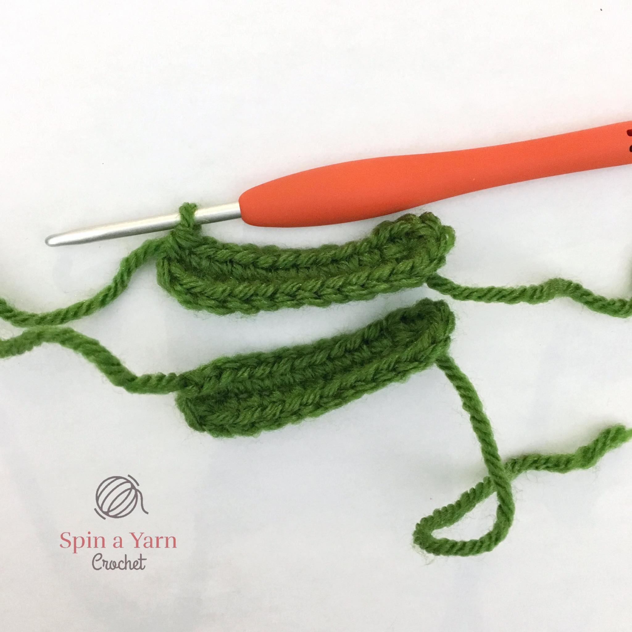 We are going to be crocheting around the base chain to make an oval. Then we will place the two ovals together and crochet around them to join them.