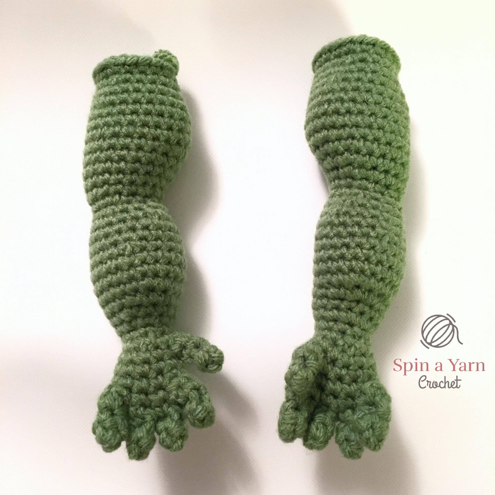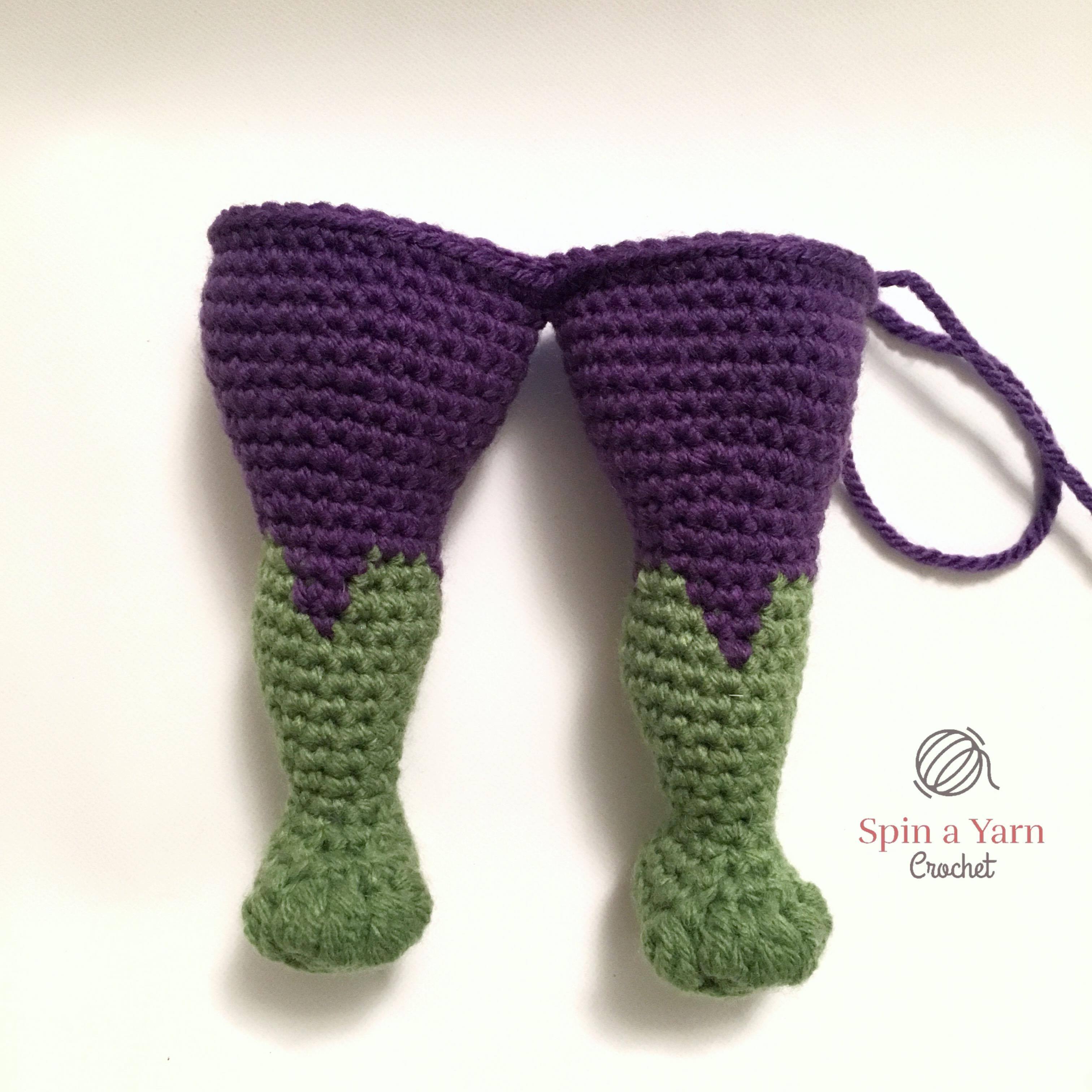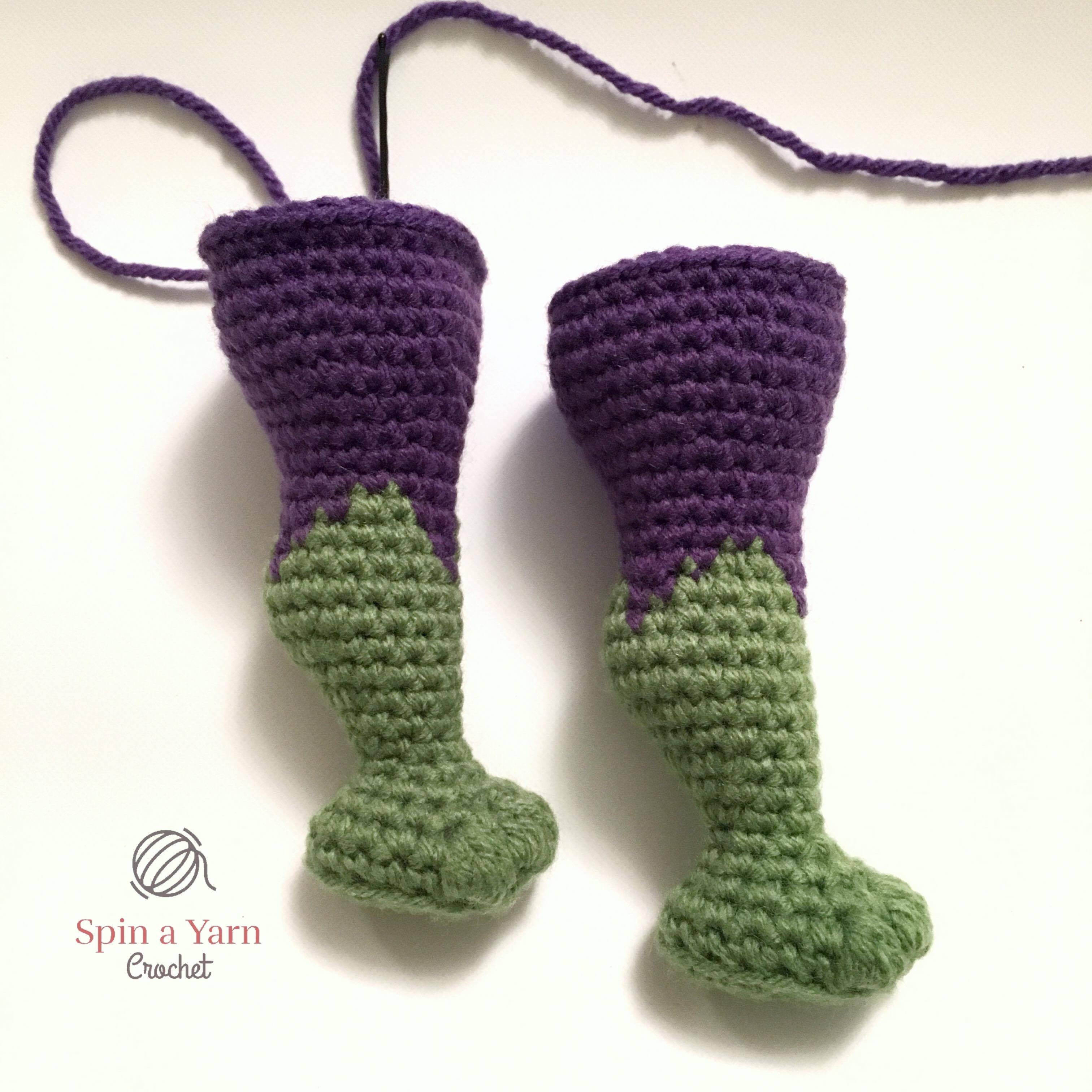 I didn’t have a specific size in mind when I started designing but, in order to design and include the musculature shaping, my Hulk ended up being freaking huge, which I guess is fitting. I totally forgot to measure him before sending him off to his new owner, but I would guesstimate his finished measurement to be approximately 33cm/13″ from top to bottom. You can size him down by going down a hook size, or going down in both hook and yarn size.