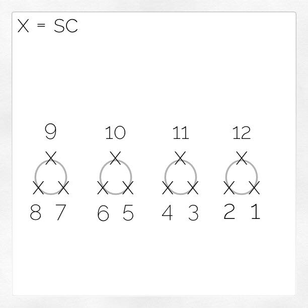 Sc3tog – Single crochet three together. Worked exactly the same as an invisible decrease except it’s worked over 3 stitches instead of 2.