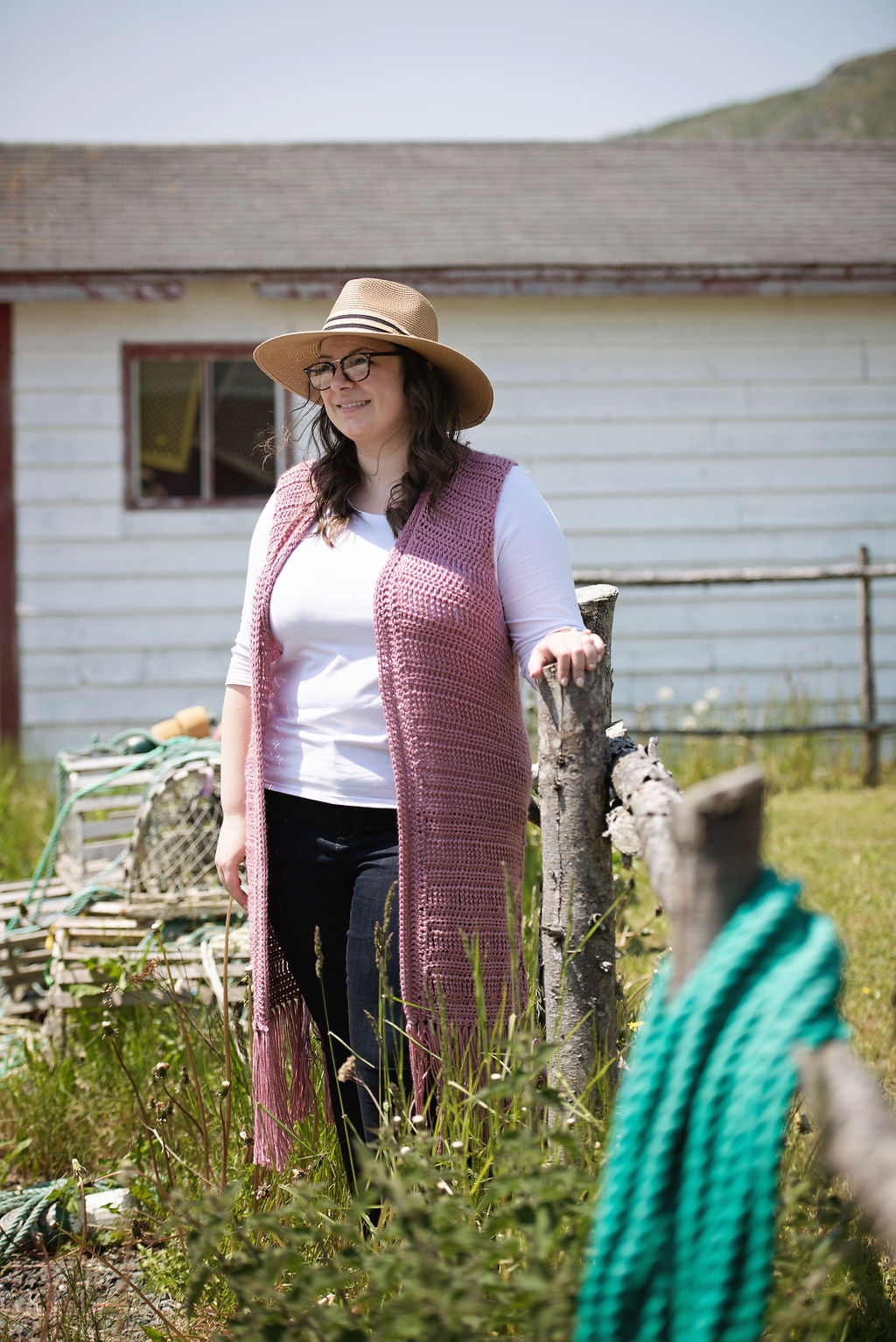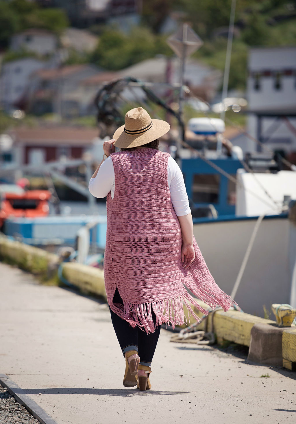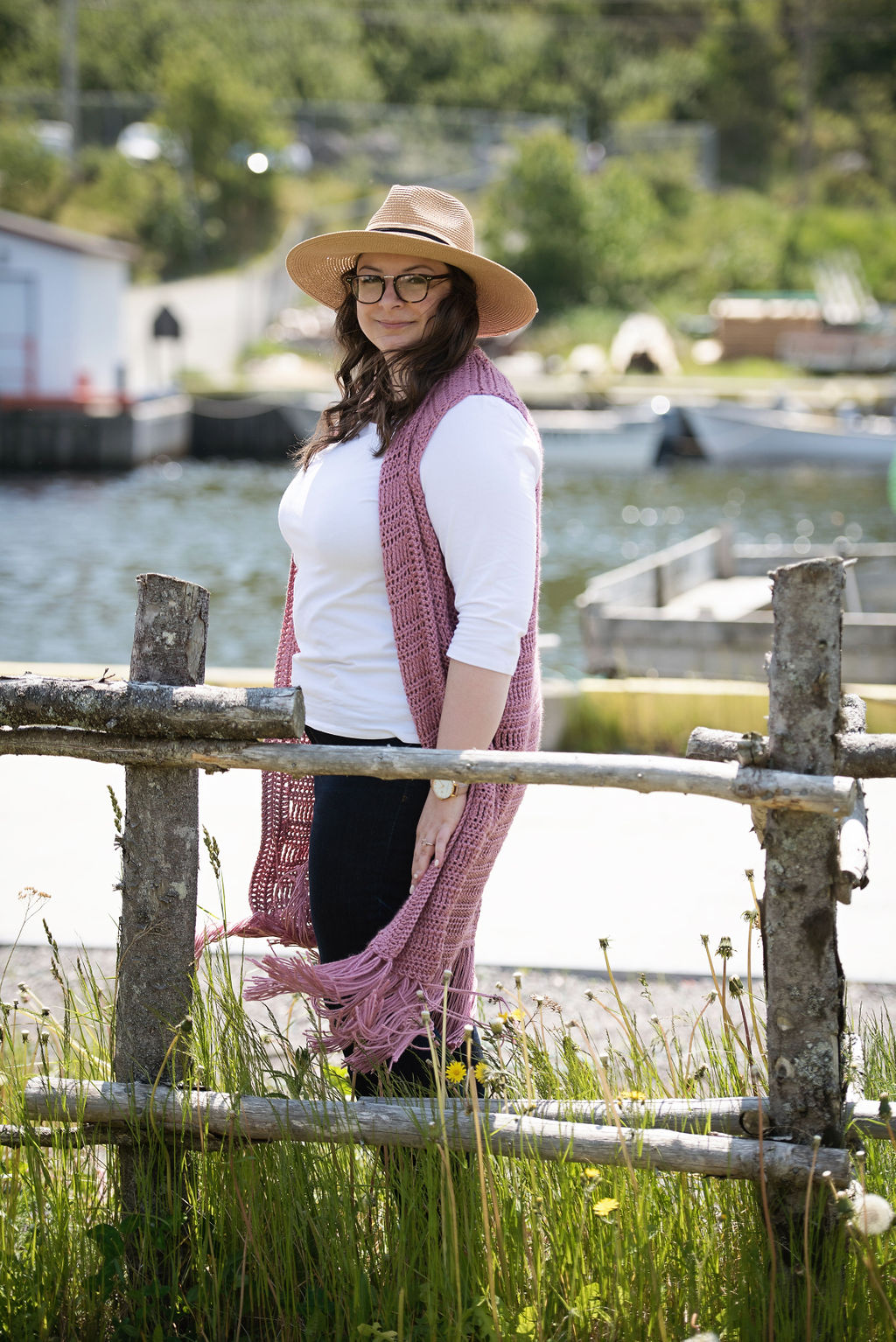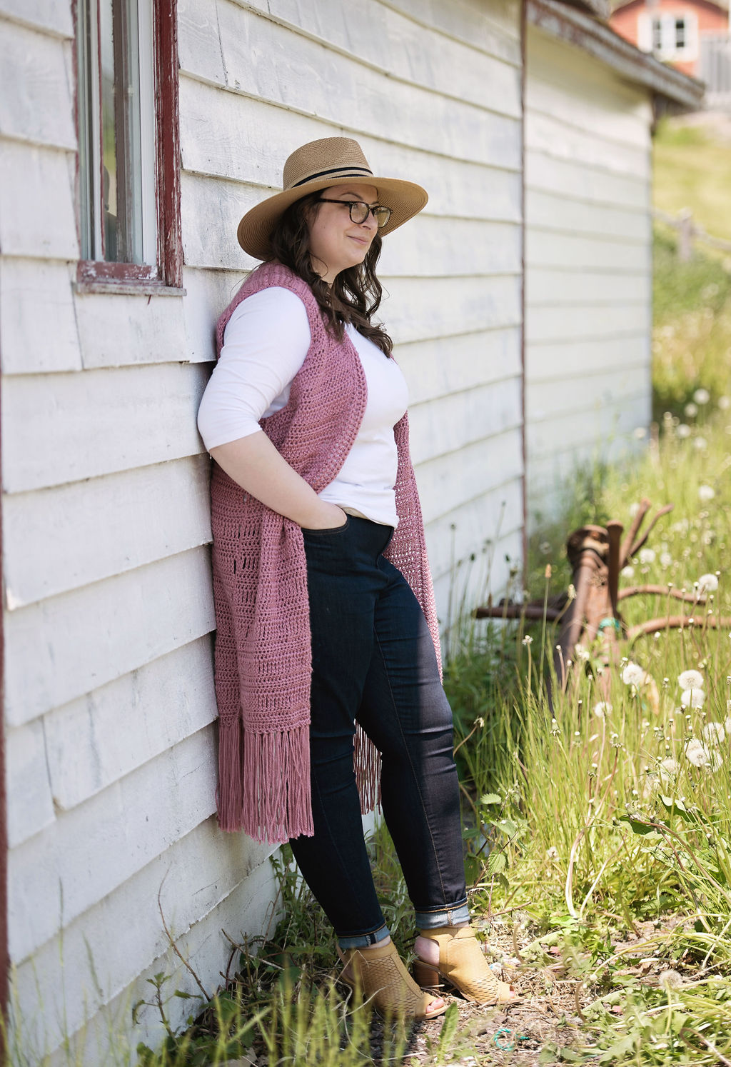 This vest is the Indie Boho Vest by Meghann at Twisted Arrow Designs (check her out in IG @twistedarrowdesigns). It’s a gorgeous vest that can be dressed up or down. I knew as soon as I saw that dusty pink version on the Revelry page that I was going to be ALL OVER THAT. I went out and picked up several skeins of Caron Simply Soft in Plum Wine and got to it right away (btw, the yardage was super accurate for this pattern!) I had so much fun making this vest and photographing it.