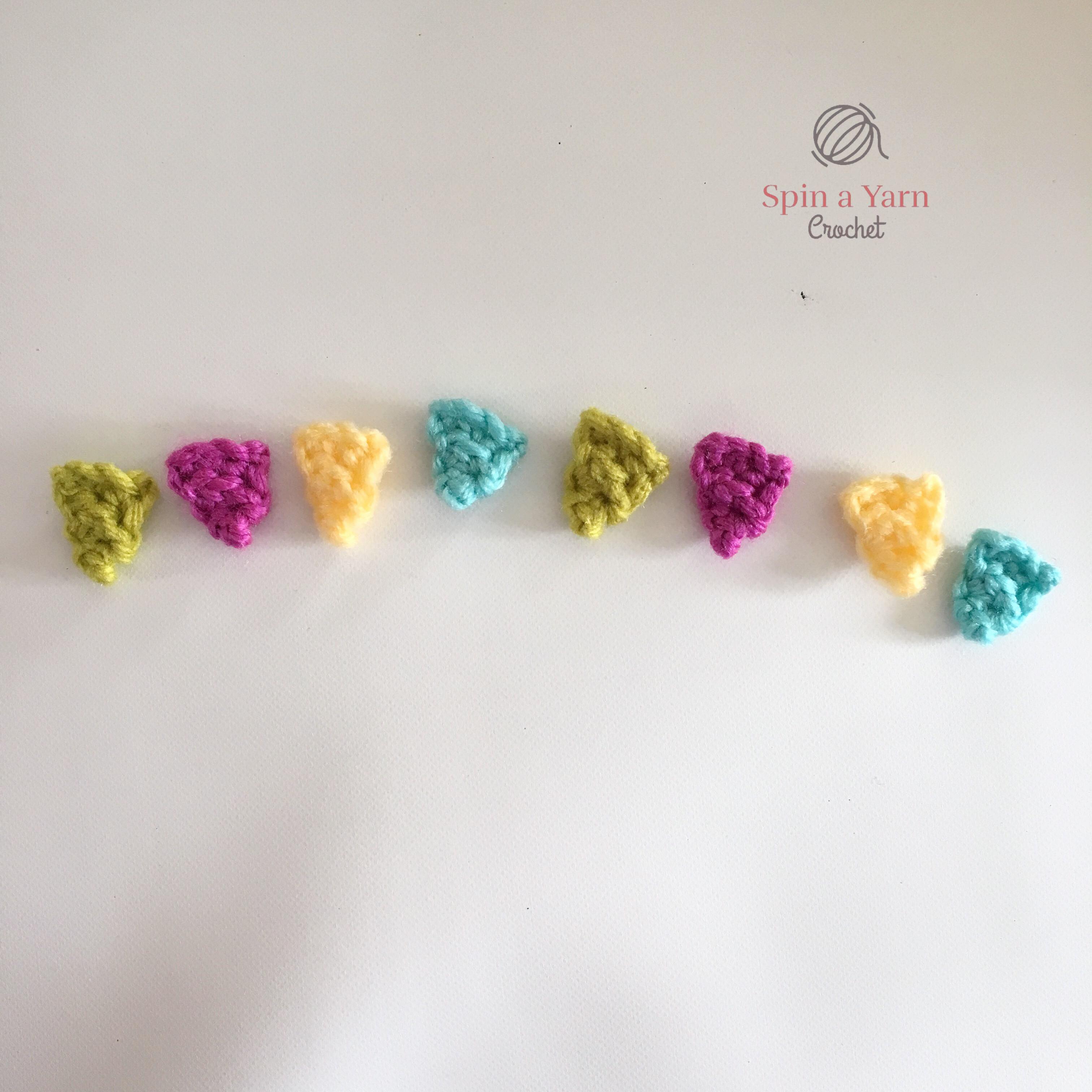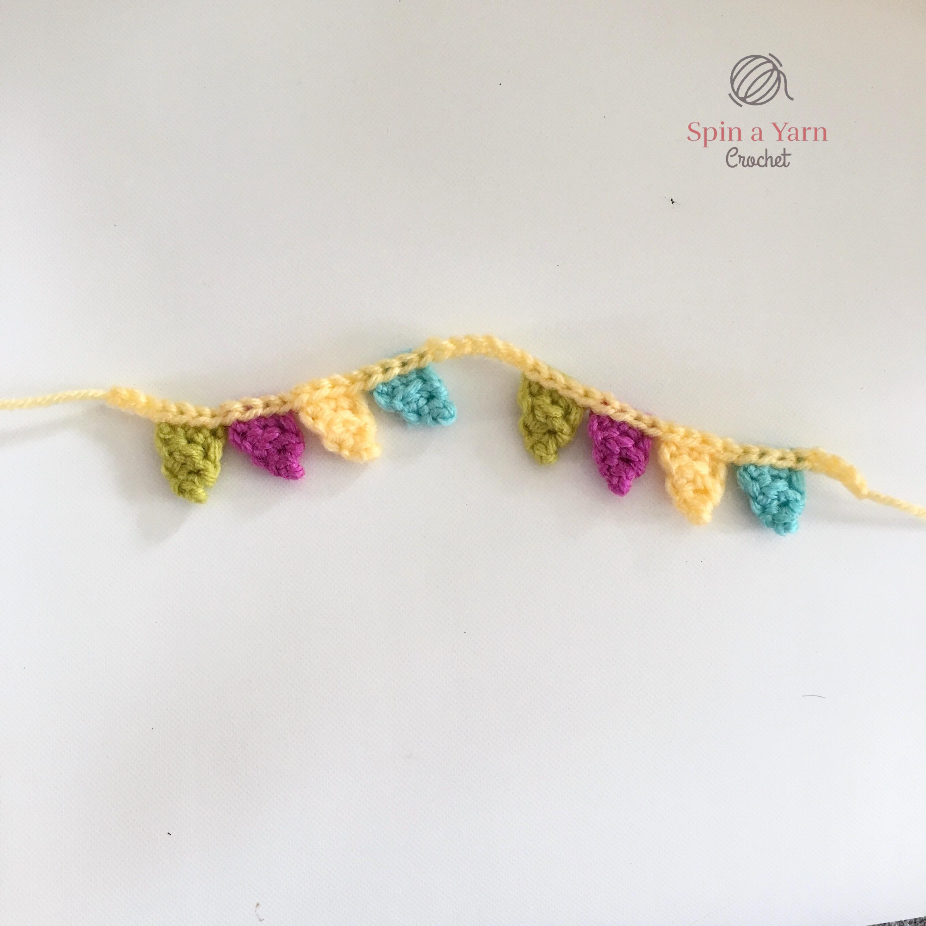 Tie off. Weave in yarn tails. Repeat until you’ve made 8 flags.