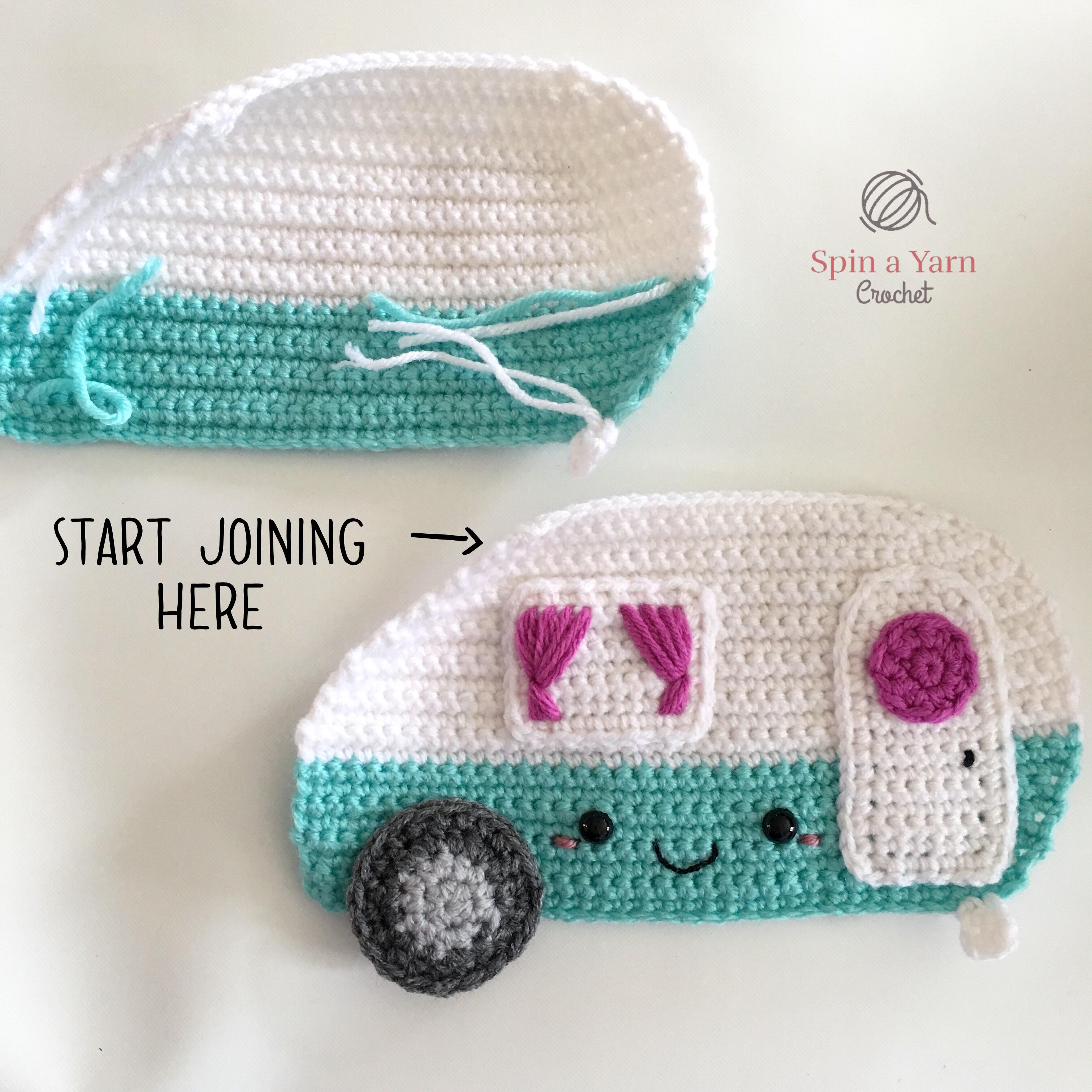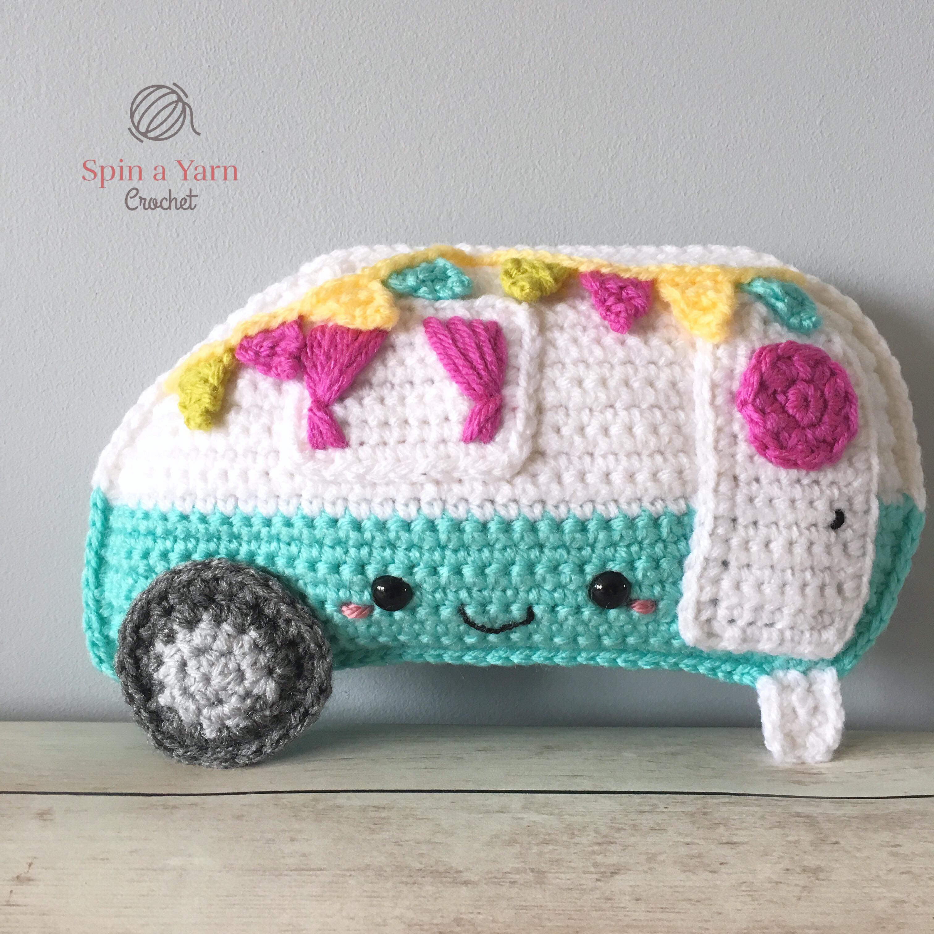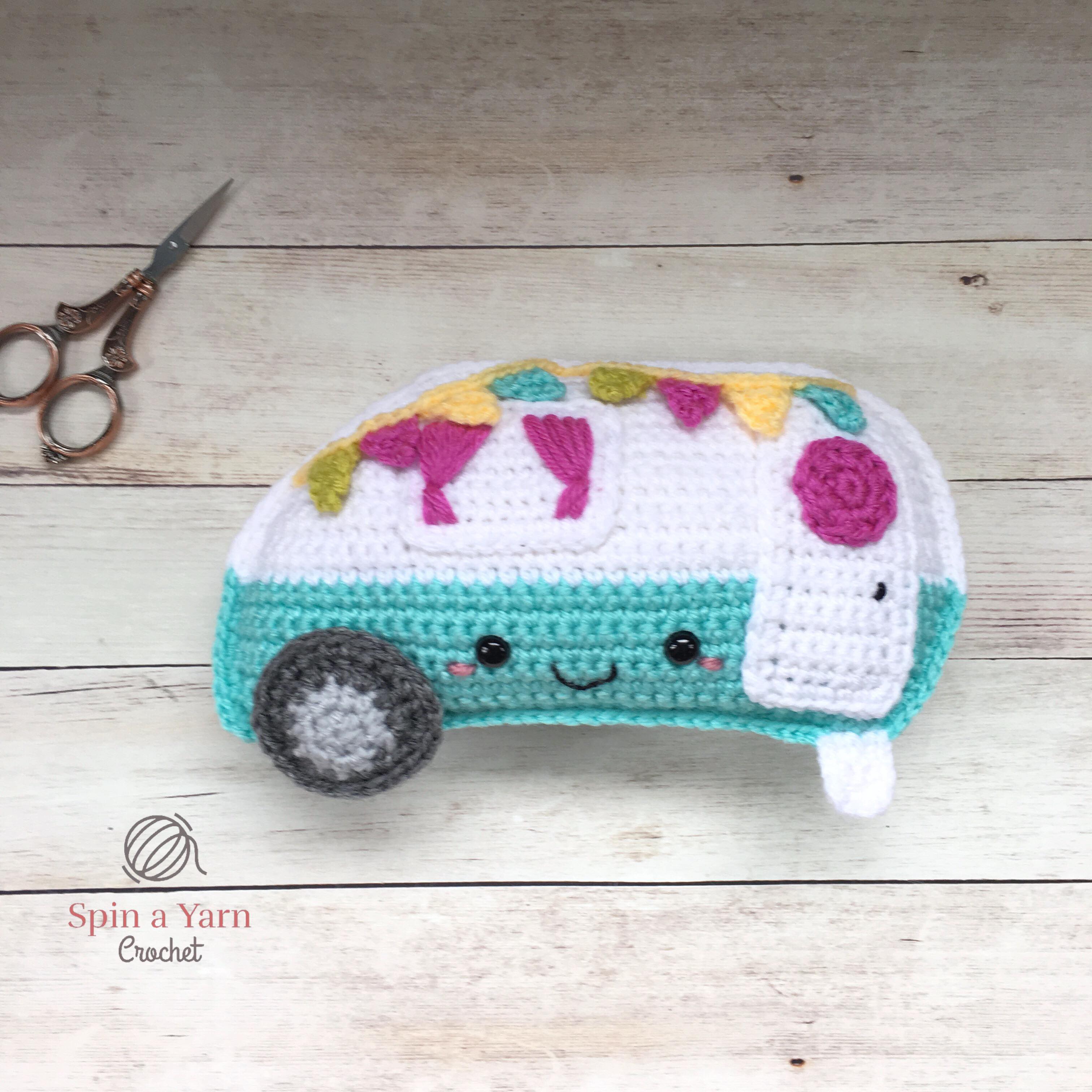 As usual, this pattern is made in the same style as my Ragdoll patterns; separate pieces worked in flat rows and then joined together to give them that unique 2-D look. The Camper has 7 separate pieces, not including the optional flags.