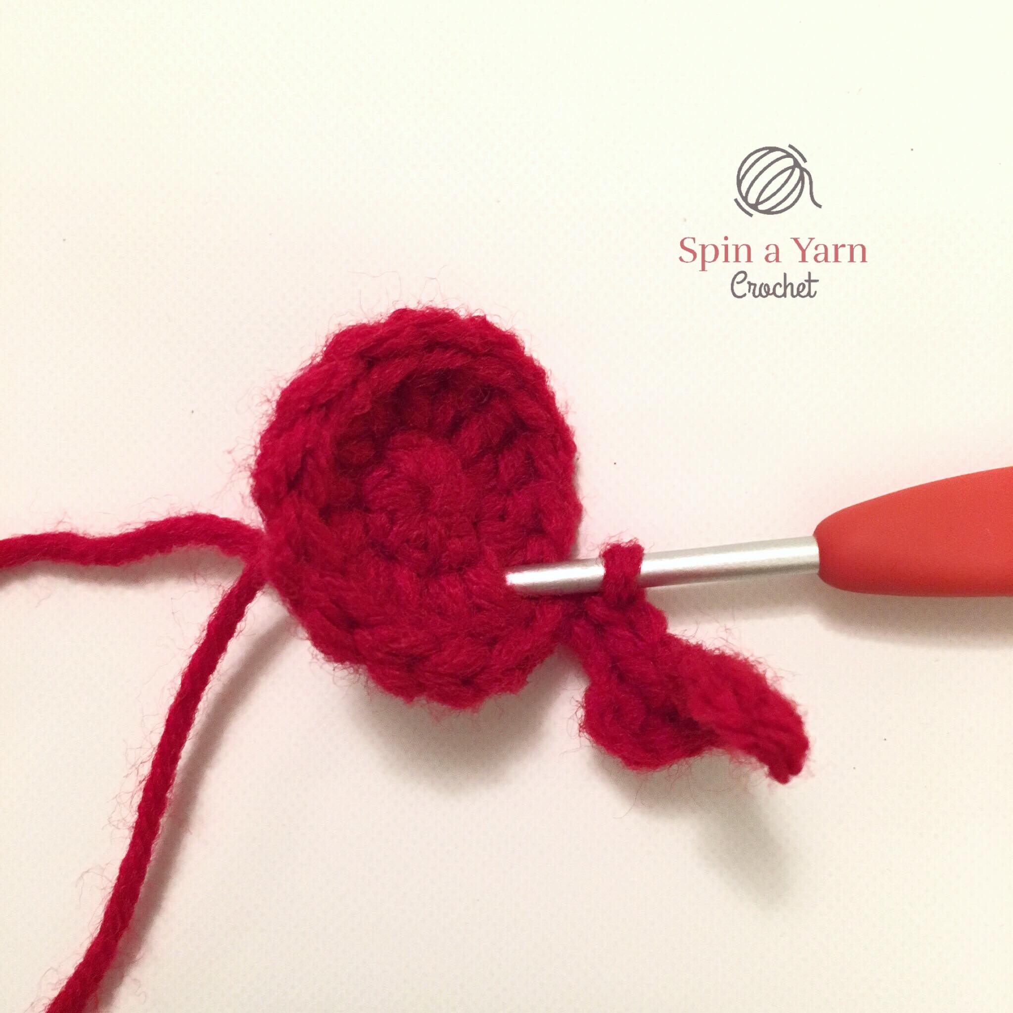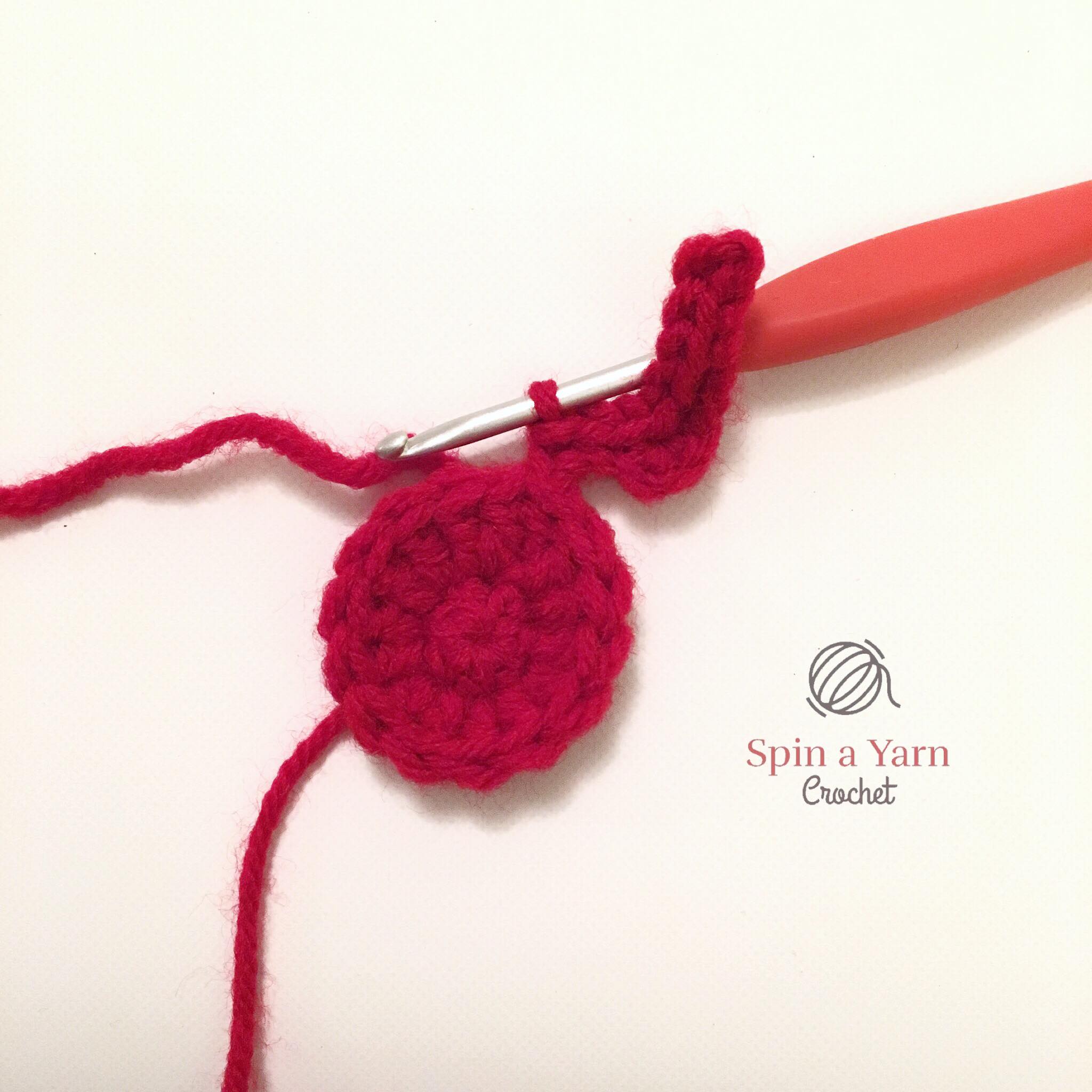 Rnd 2: 2 dc in each st around, 2 dc into the join space of previous round (14 sts)