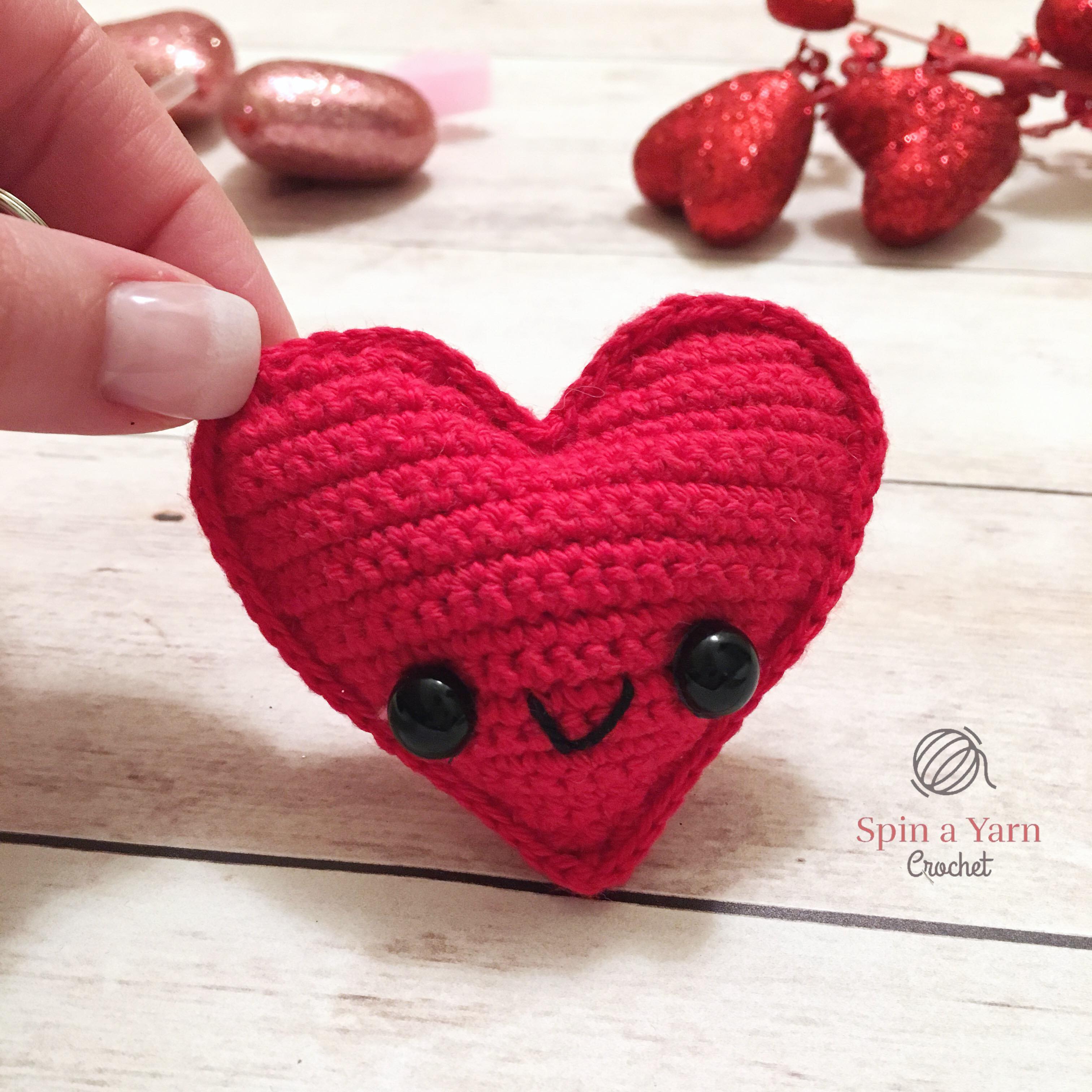Crochet all the way down and around the heart and up the opposite side. Stop here and pull up a long loop.