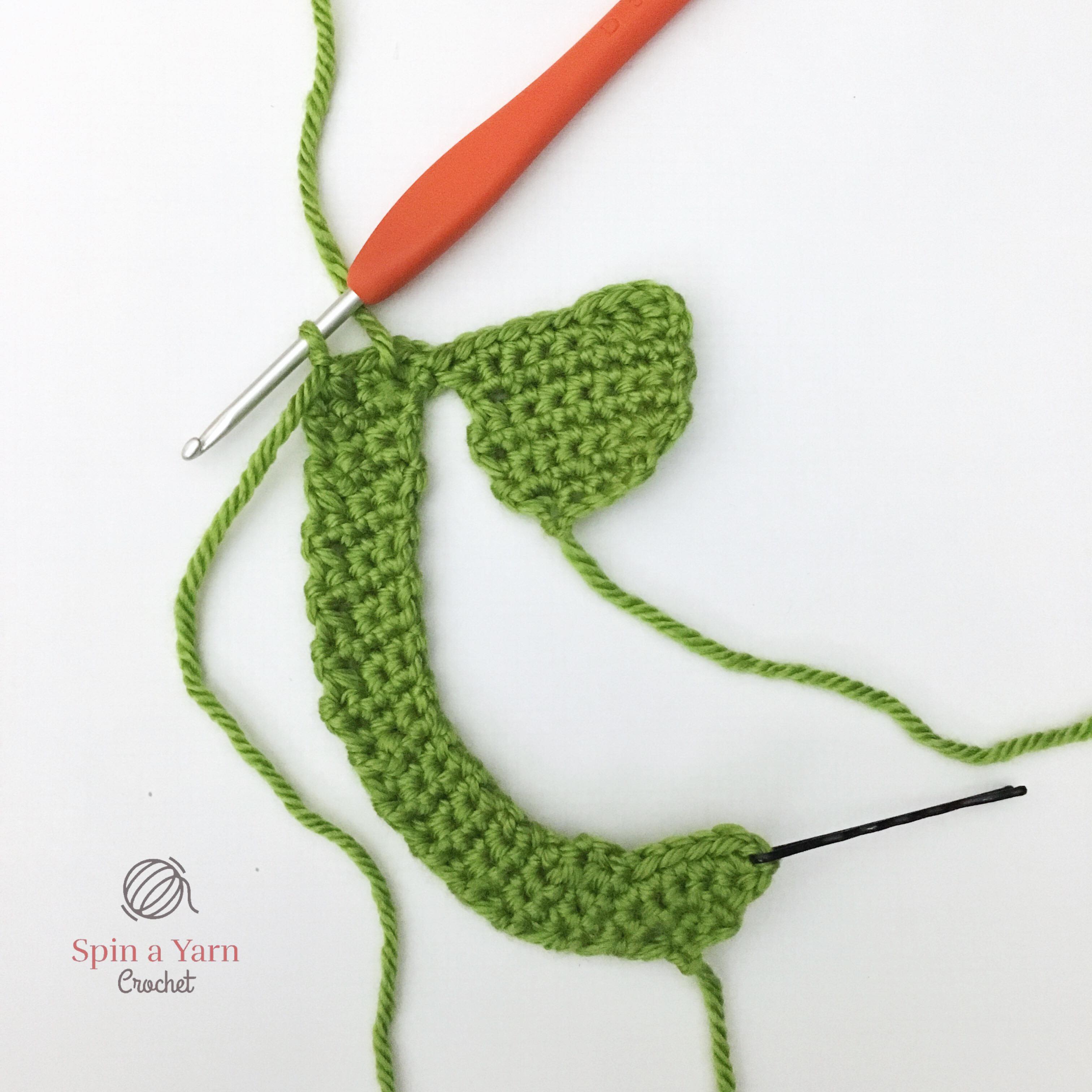 Line up the two panels, matching up all sides and sc around the entire piece to join. Stuff lightly as you work up the opposite side (you may need to use the back of your crochet hook or a chopstick). Slst to first st and tie off.