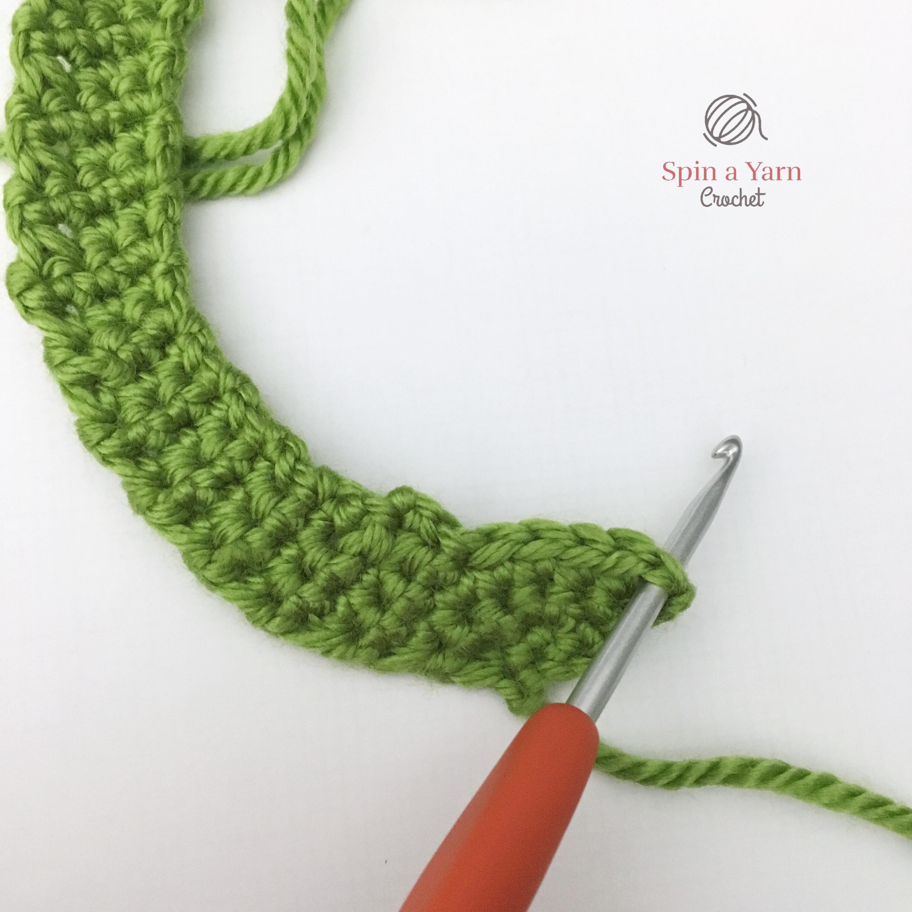 In the next row, you will crochet only part way across the previous row before chaining and turning.