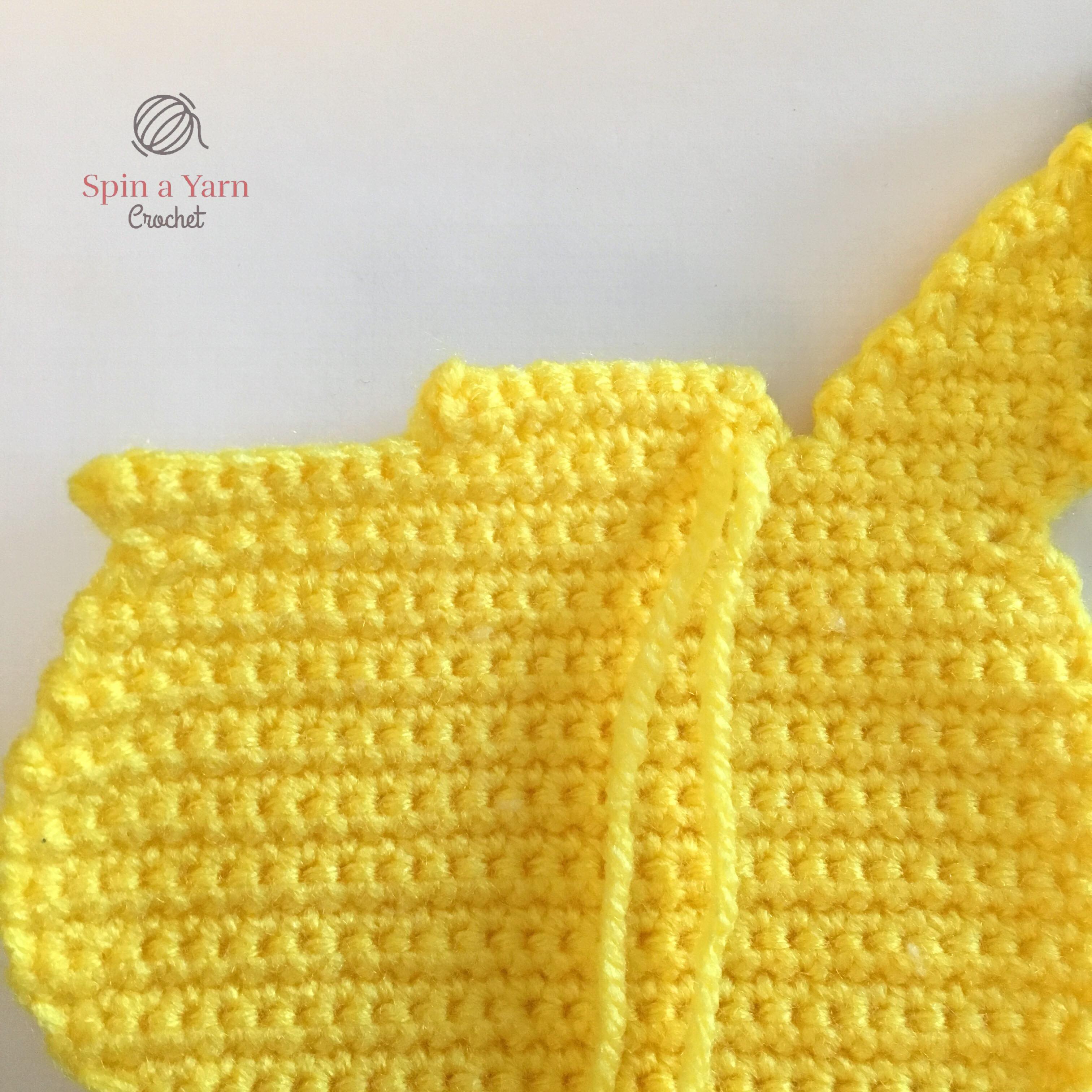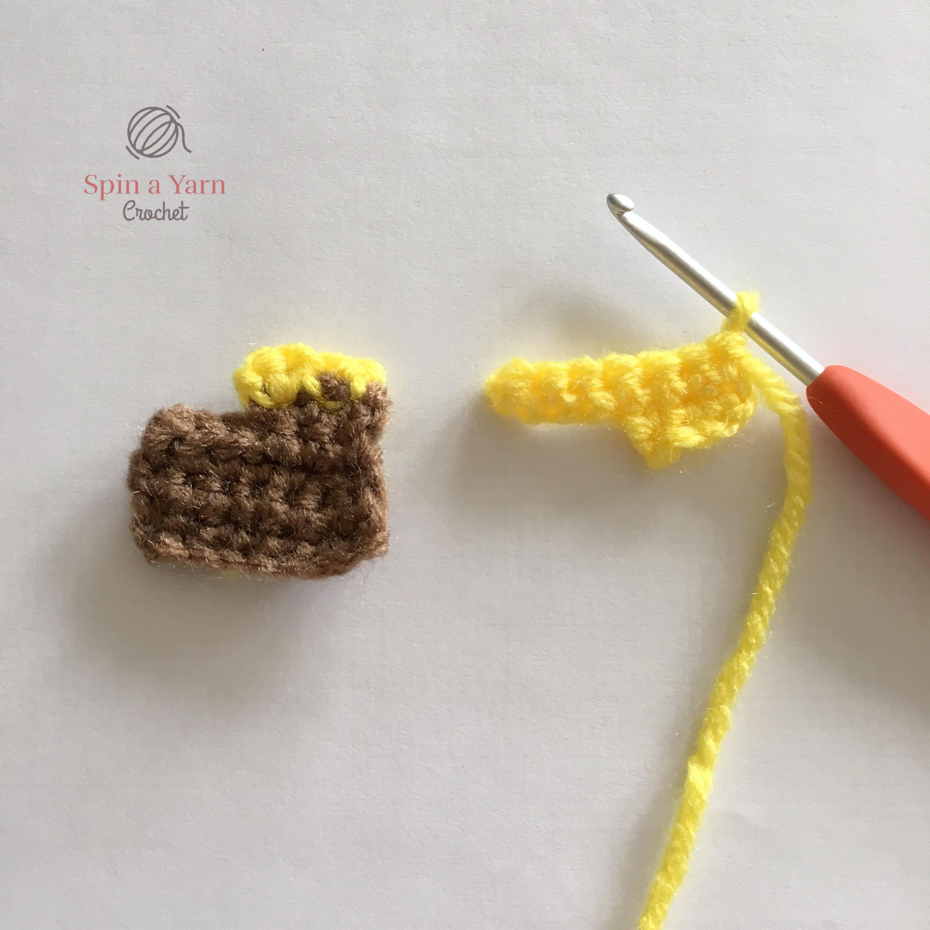 Using a 3.25mm hook and yellow yarn. Ch 1 and turn at the end of each row.