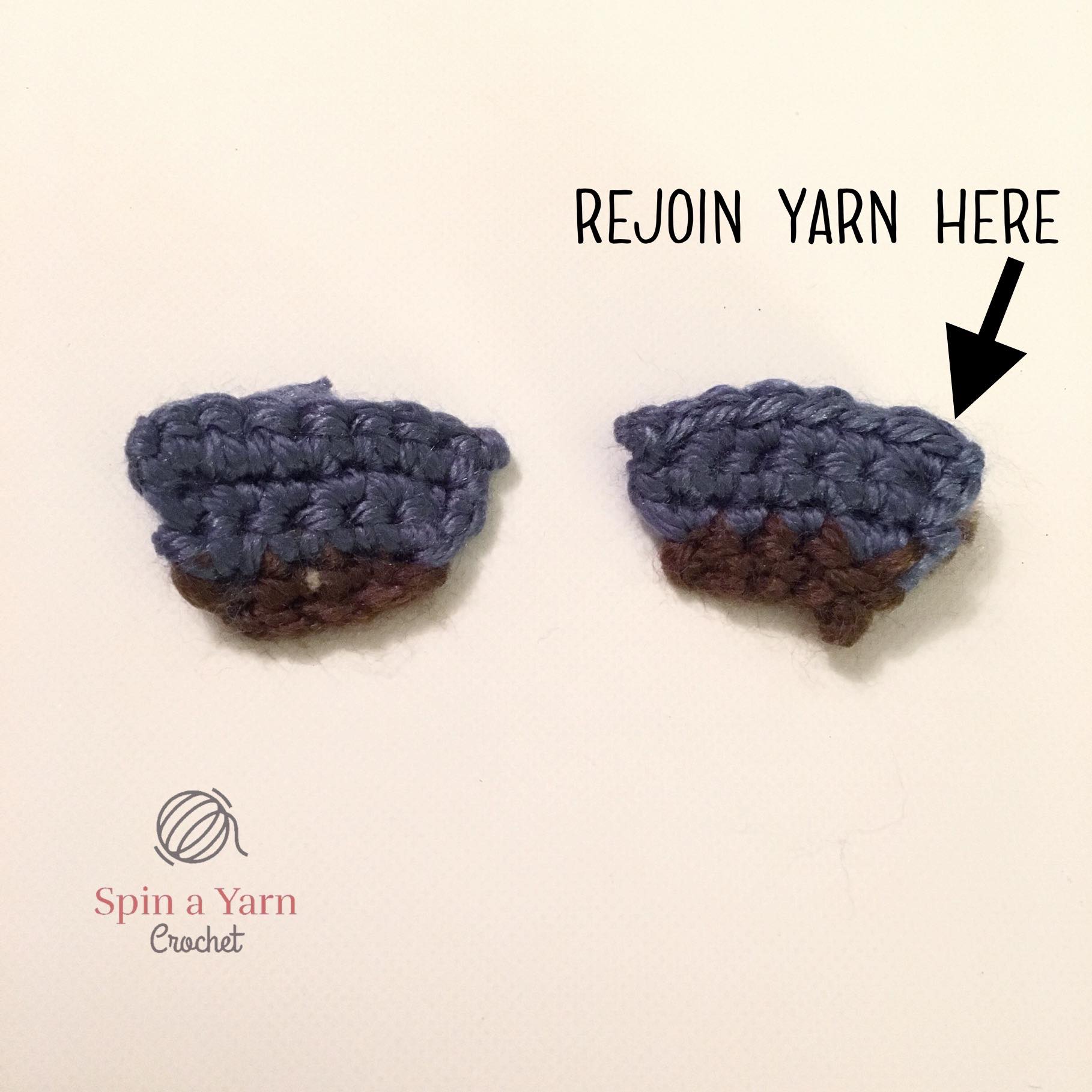 Also I never really figured out how to do the legs inversed despite reading the comments about it. My yarn tails from the color change go off to the side rather than facing up or down. I knotted the two ends together, is that right? Because I can kind of flip the knot from one side to the other, and I assume it can be tucked on the inside once I sew the edges together.