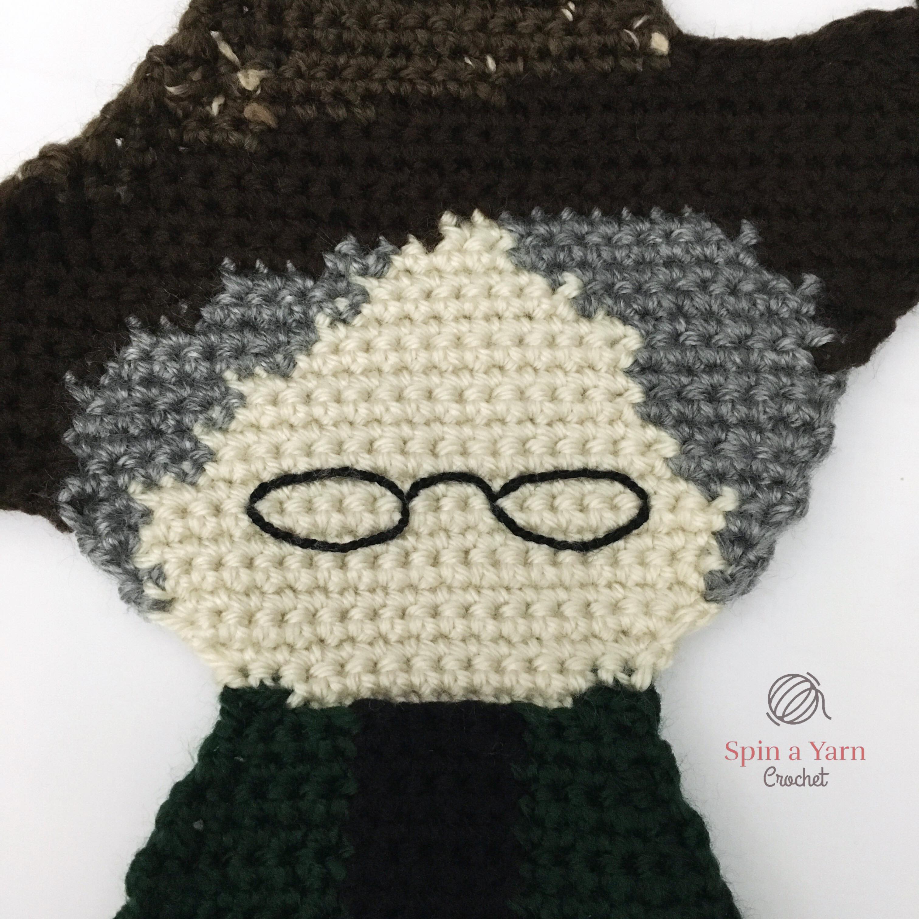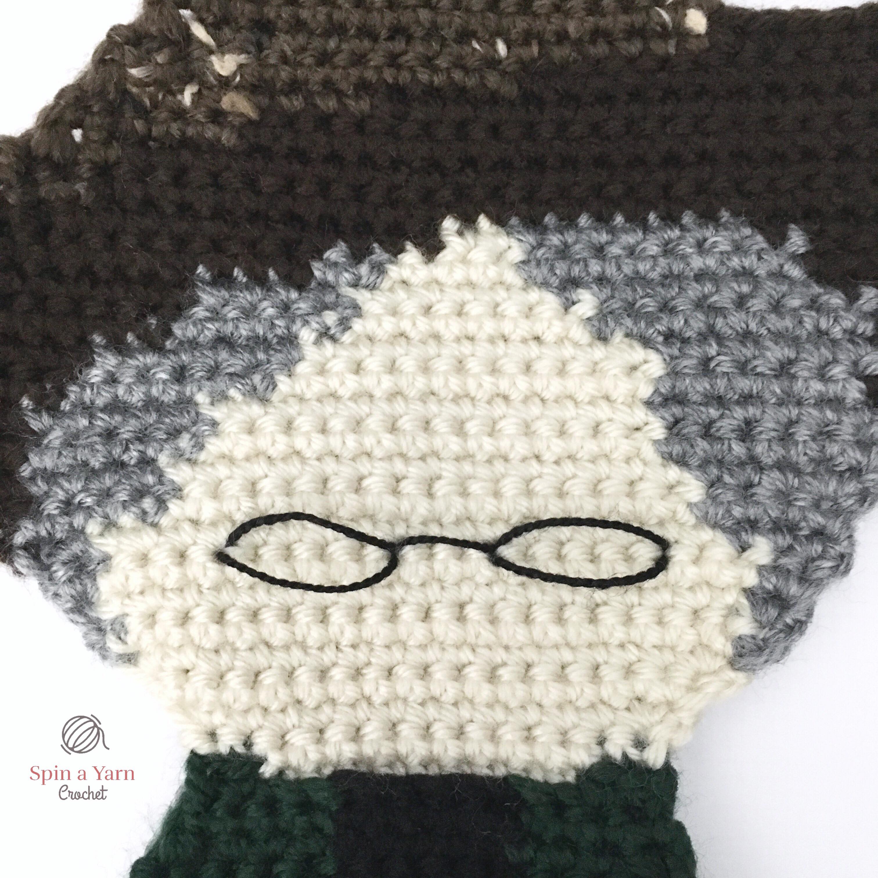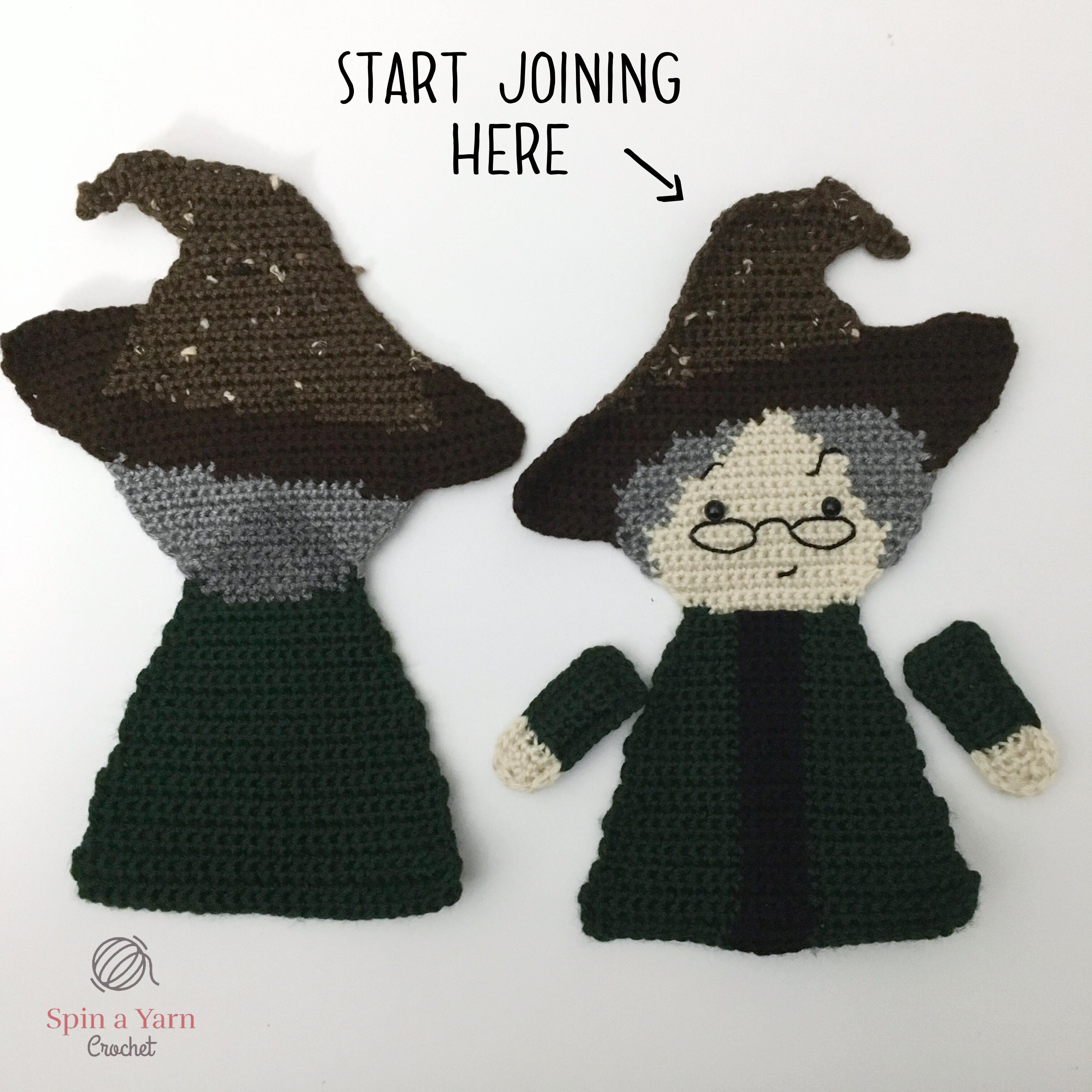 As usual, this pattern is made in the same style as my Ragdoll patterns; separate pieces worked in flat rows and then joined together to give them that unique 2-D look. Our favourite stern professor has just 6 separate pieces (yes, the hat and body are worked all in one piece!) This pattern incorporates the tapestry (or intarsia) crochet technique and has some colour-work involved so please be sure to read the “Reading this Pattern” section!