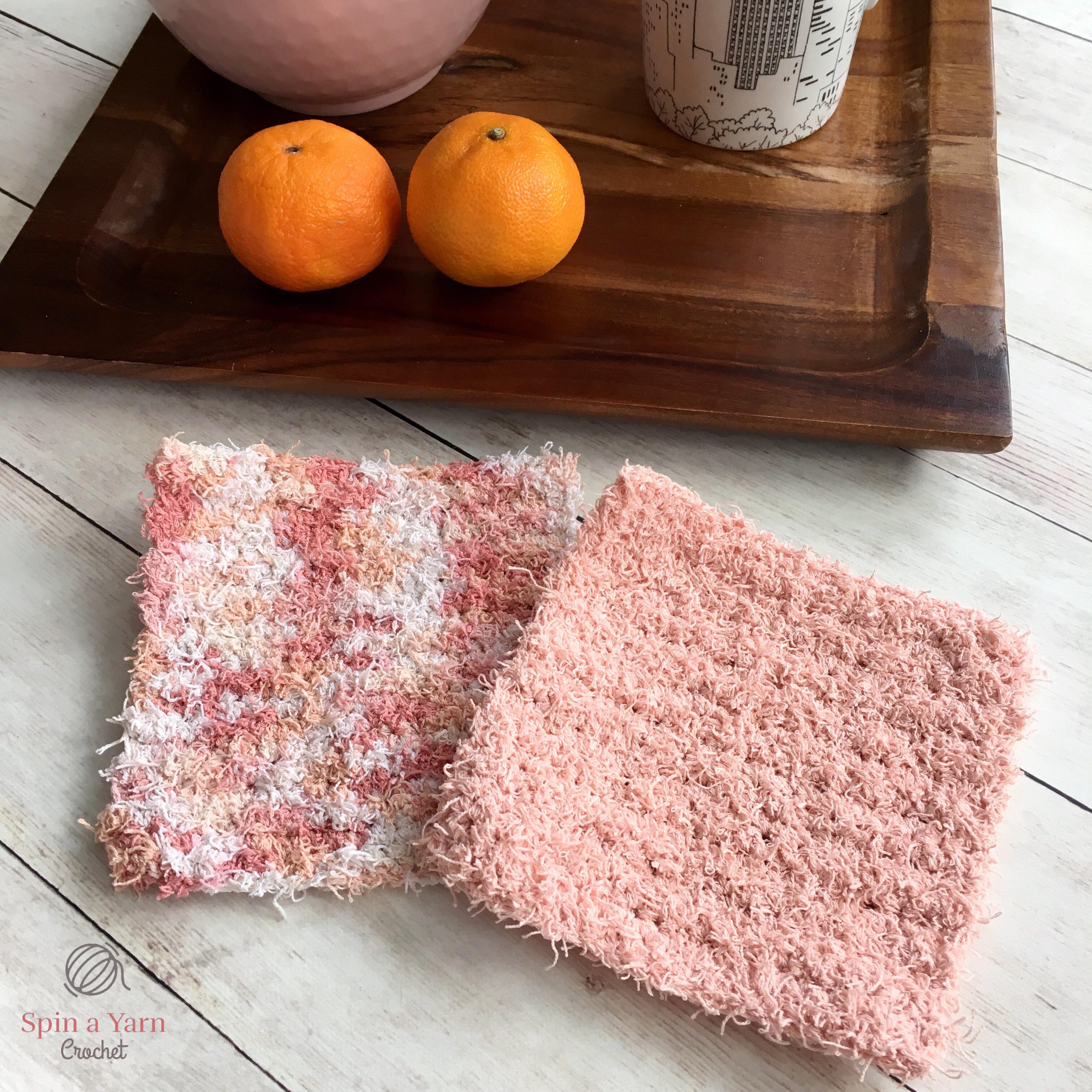 Ready for this mega-complicated pattern? Brace yourselves: 20 rows of 20 sc sts. Lol, yep, that’s it. And of course, you can make your scrubbies as big or as small as you need them, for example, 15 rows of 15 sc sts or 25 rows of 25 sc sts, etc. Super simple and quick!