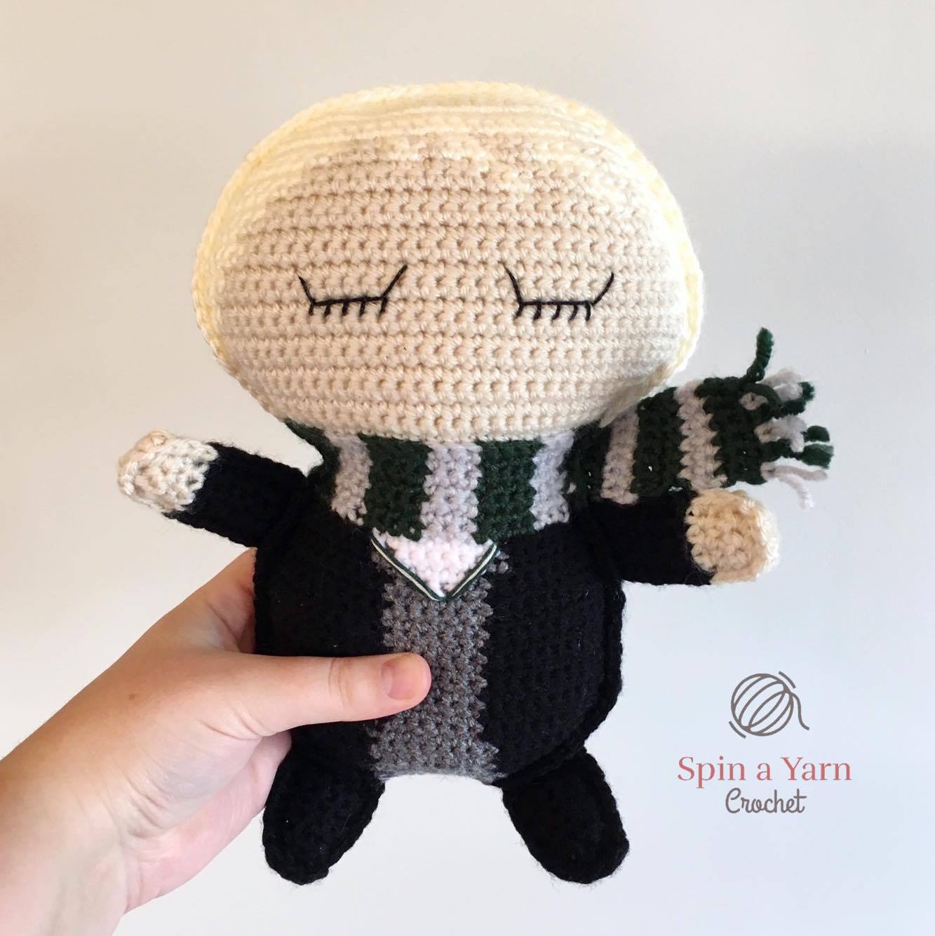Hello again! We are moving right along and onto the third post in the Hogwarts Ragdoll Collection: Draco Malfoy! The Collection includes Harry, Ron, Hermione and Malfoy (and Dobby!), and all are based on one basic pattern, which is highly customizable (Hermione’s is a bit different due to her hair!) Since each witch or wizard has their own unique characteristics, I decided to cover the differences in separate posts to keep everything more manageable. To be honest, there really isn’t a whole lot to cover for this one, other than the materials and colour-changes, but I just couldn’t leave poor Malfoy out.