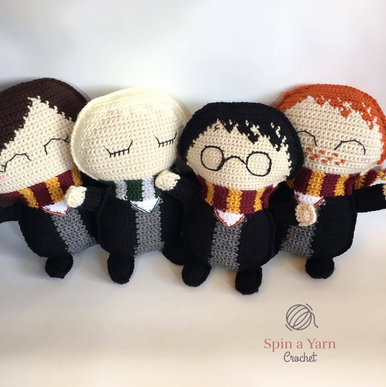 As you know by now, this pattern is made in the same style as all our Ragdoll patterns; separate pieces worked in flat rows and then joined together to give them that unique 2-D look. Any character in the Hogwarts Collection has 11 separate pieces.