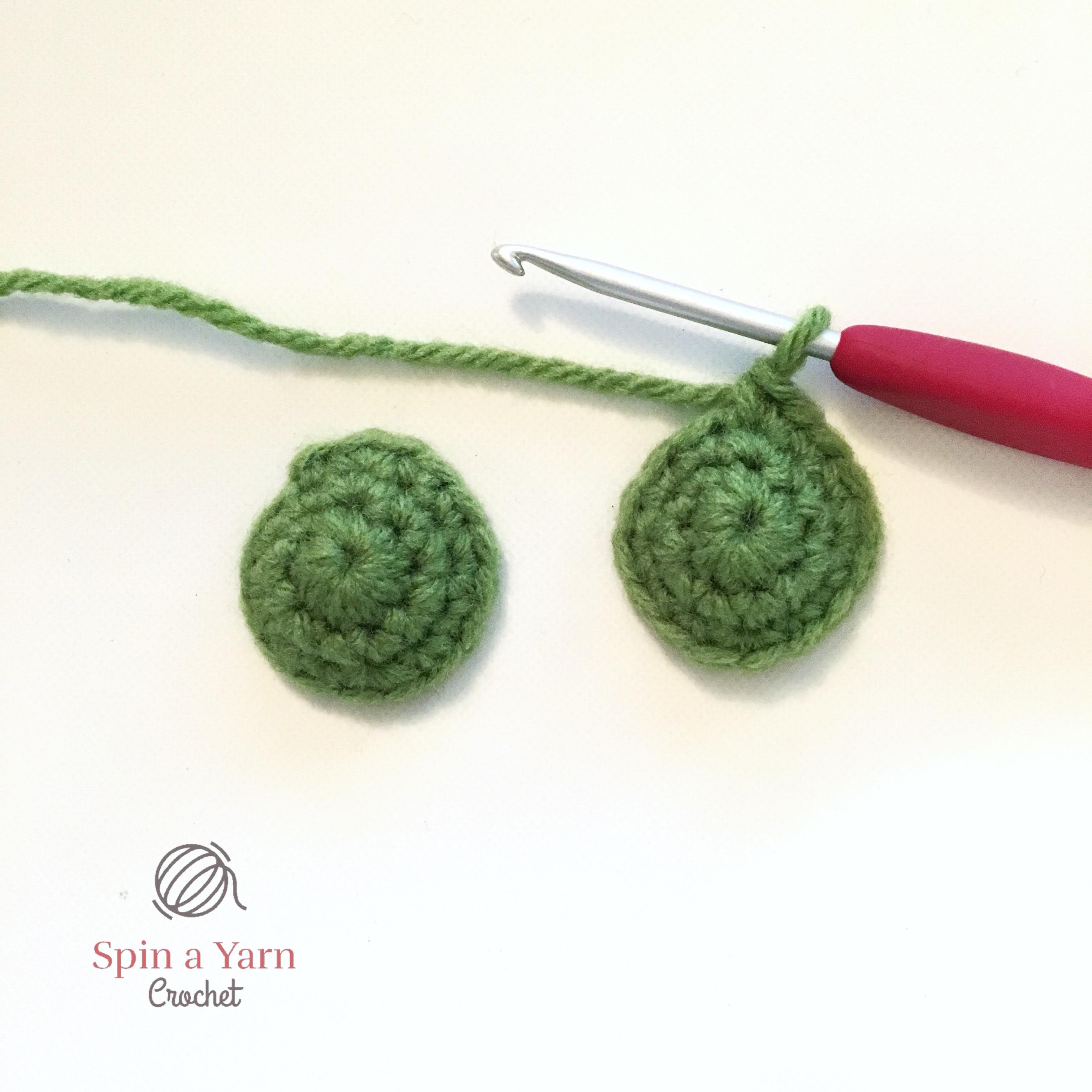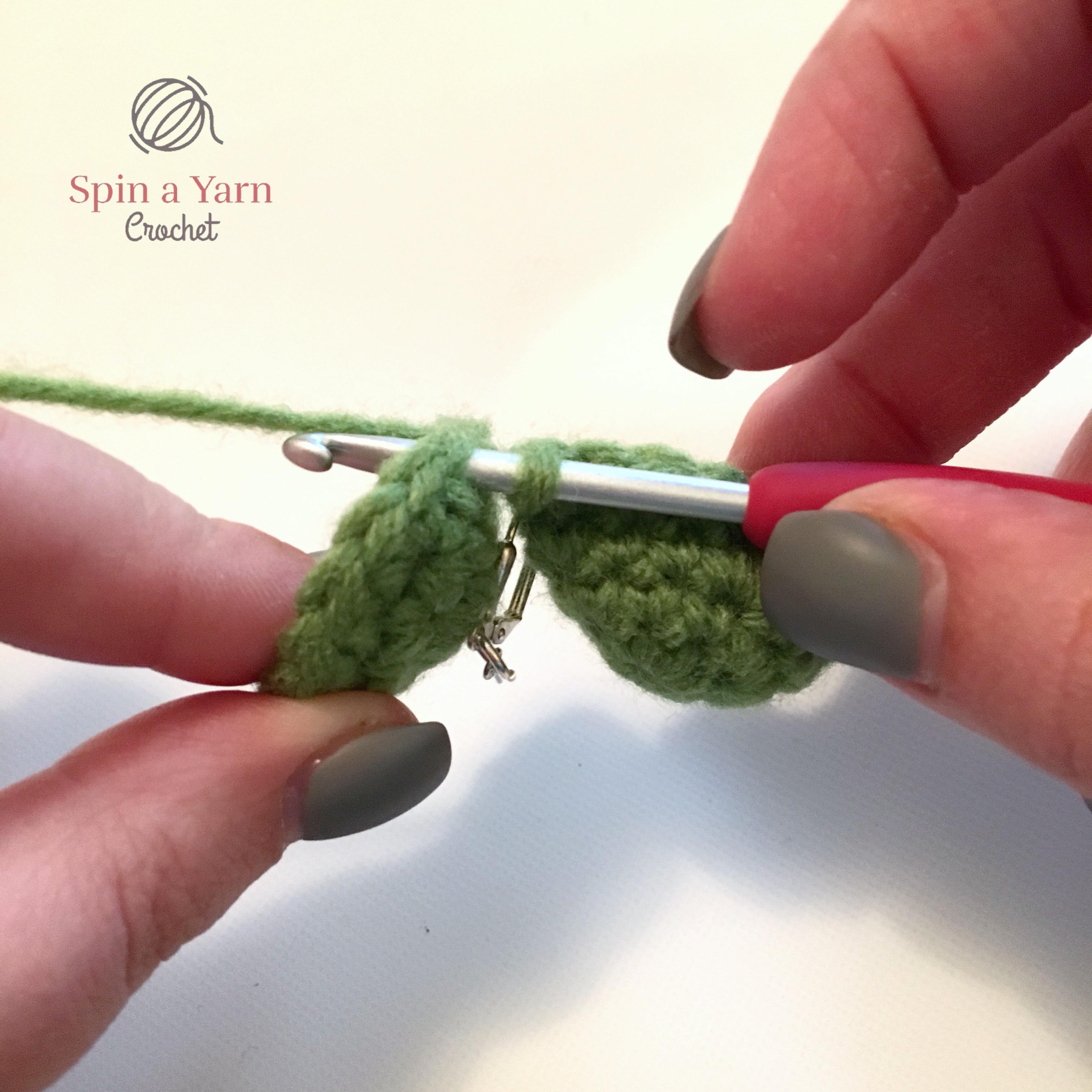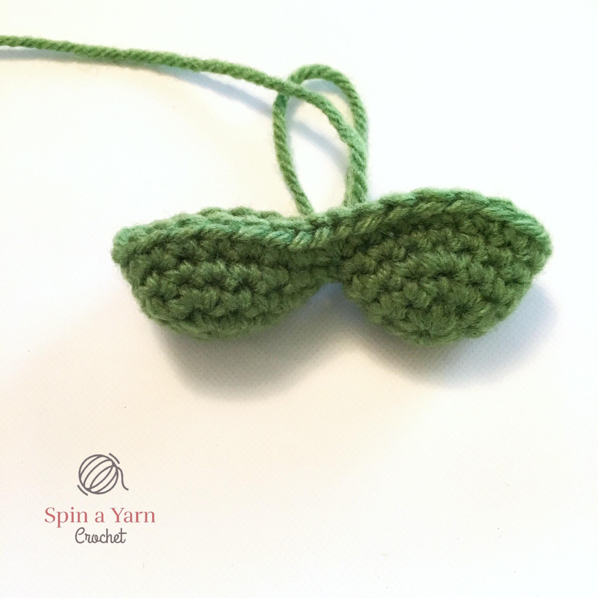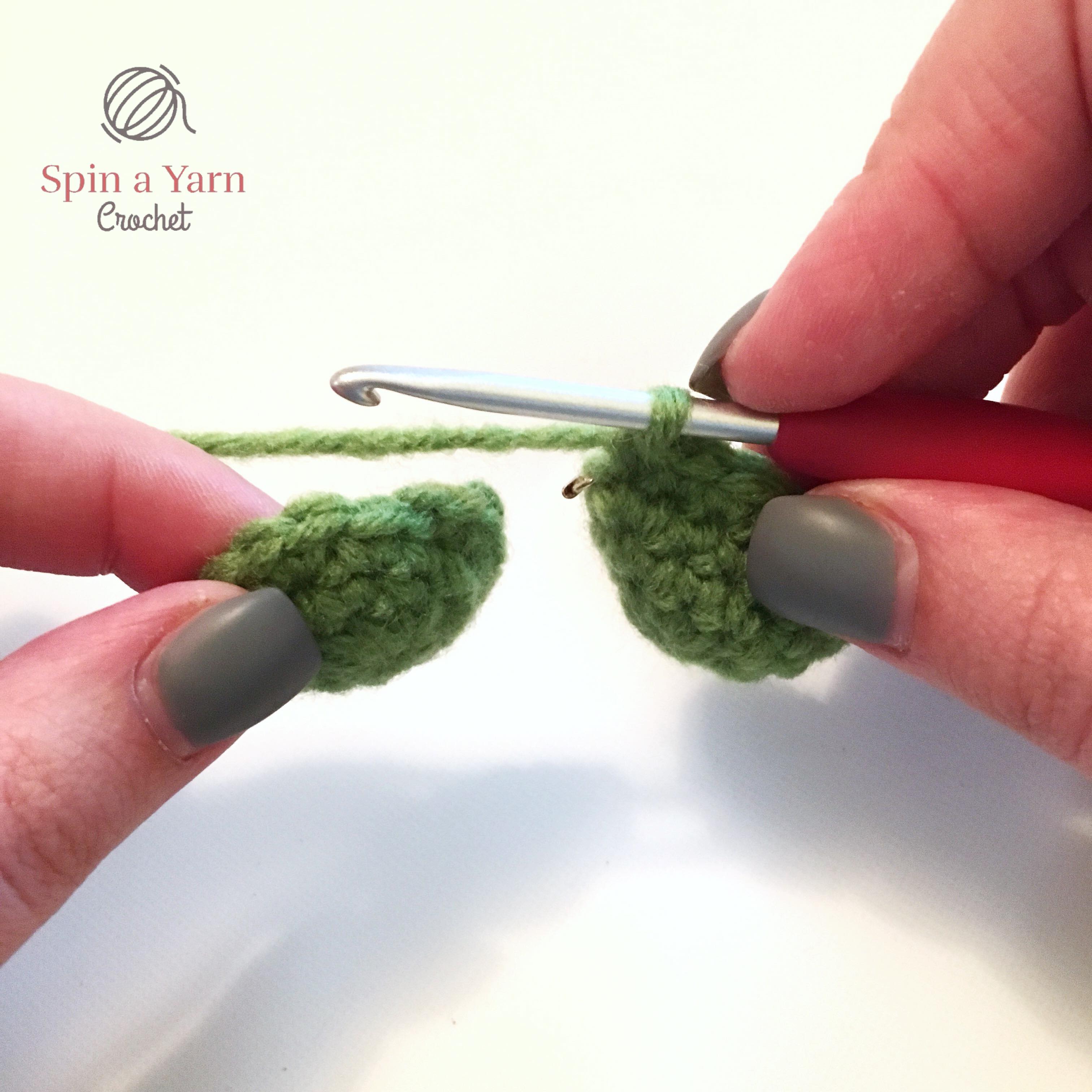 Slst to next st and tie off, leaving a tail for sewing. Sew the stem between two leaves.