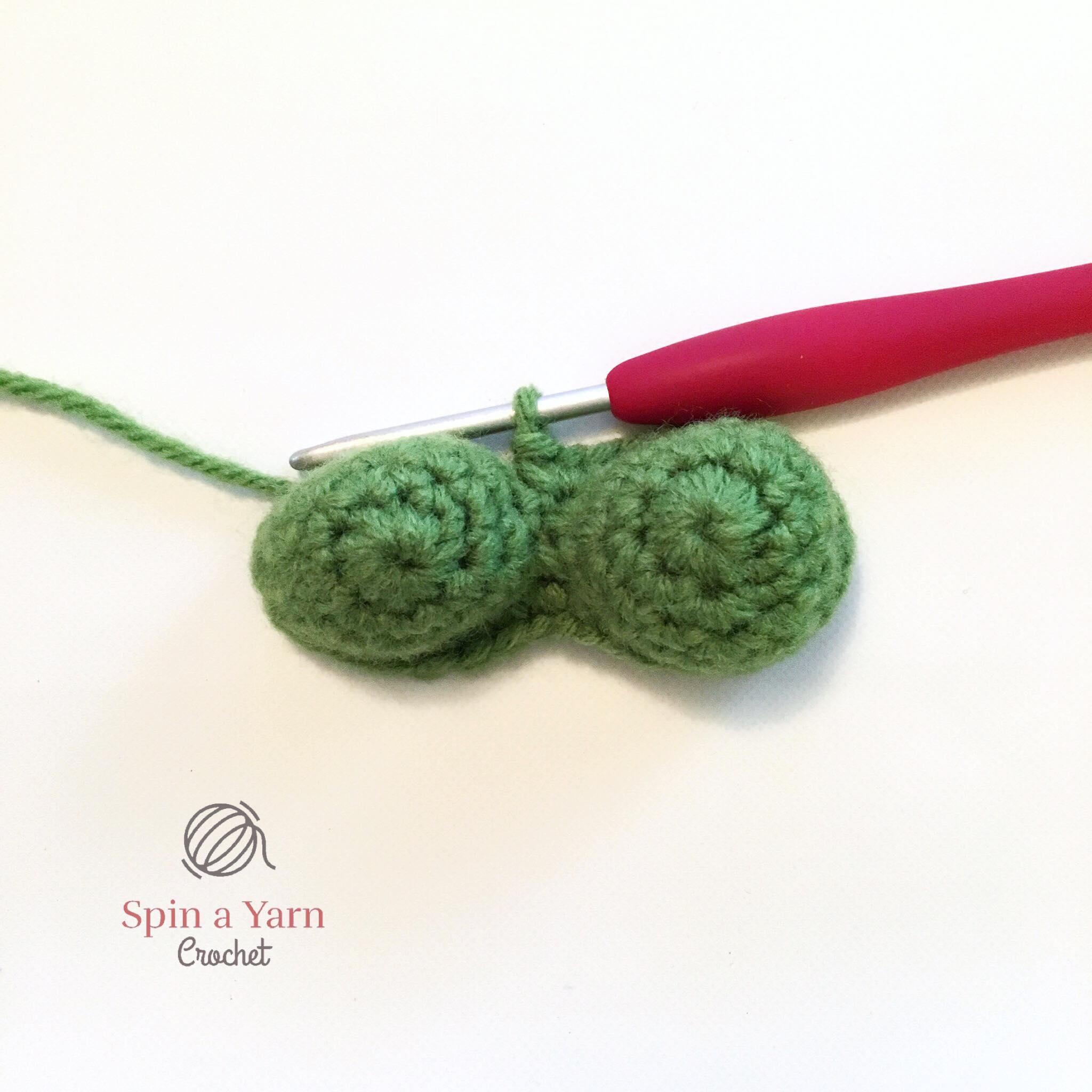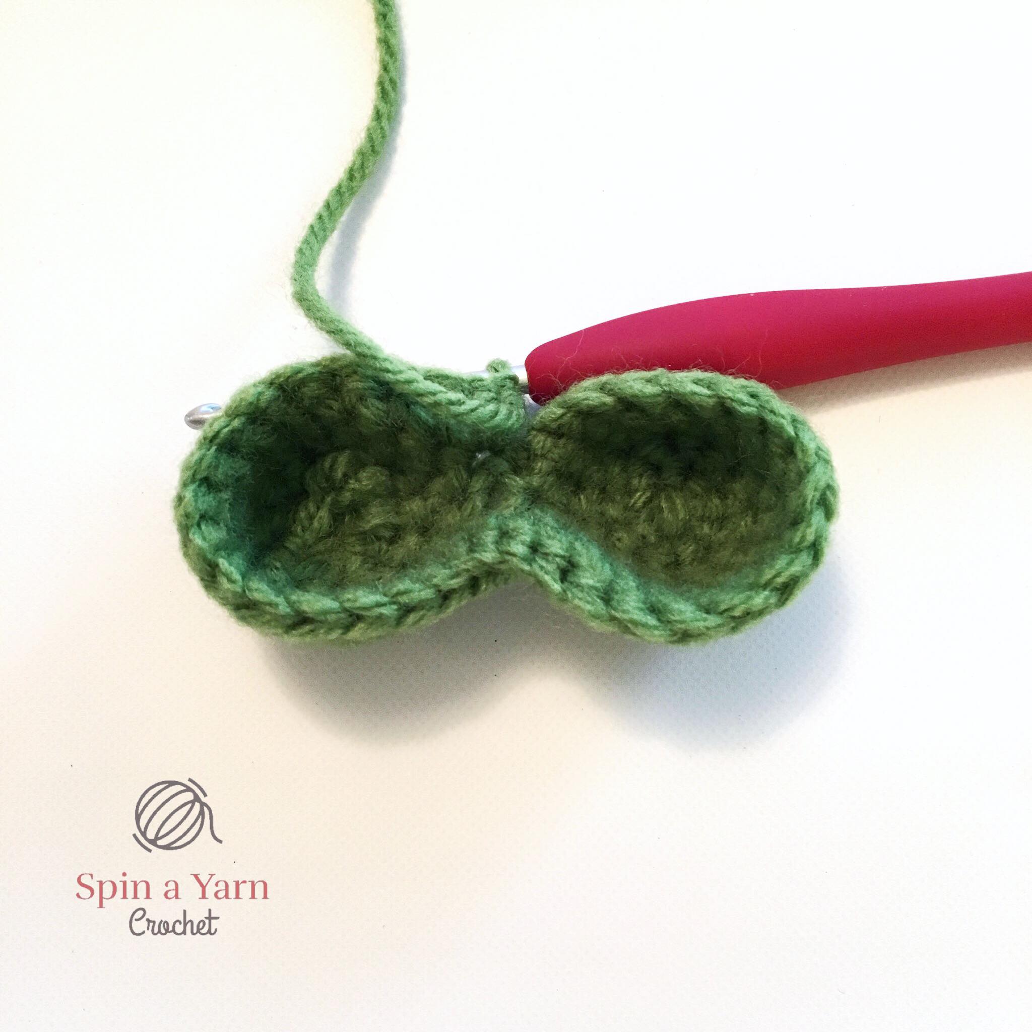 Rnd 4: Join the tips by sc 16 around the tip on your hook and then continuing to sc 16 around the first tip you made. (32 sts) Slst to beginning st (does not count as st in next rnd).