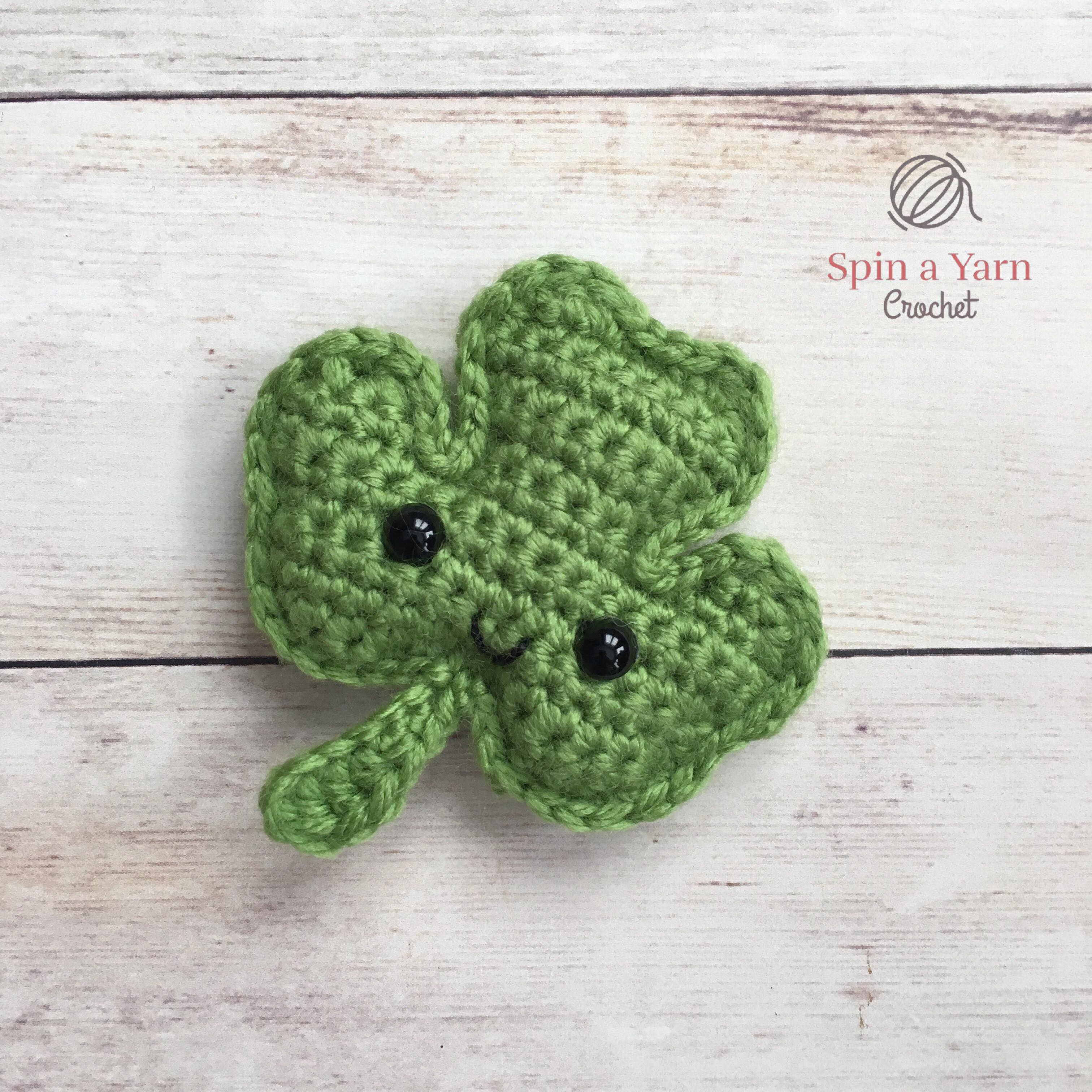 It has been a while since I did a St. Patrick’s Day themed ami. Two years ago, I released this four-leaf clover pattern (which I shamefully called a shamrock because I yearned for alliteration with the Irish name Seamus…don’t worry, the internet has not let me forget the difference between shamrocks and four-leaf clovers since.) In any event, Seamus (the four-leaf clover) is super cute but he is worked in the round (not my usual jam, as you know), and he’s fairly big.