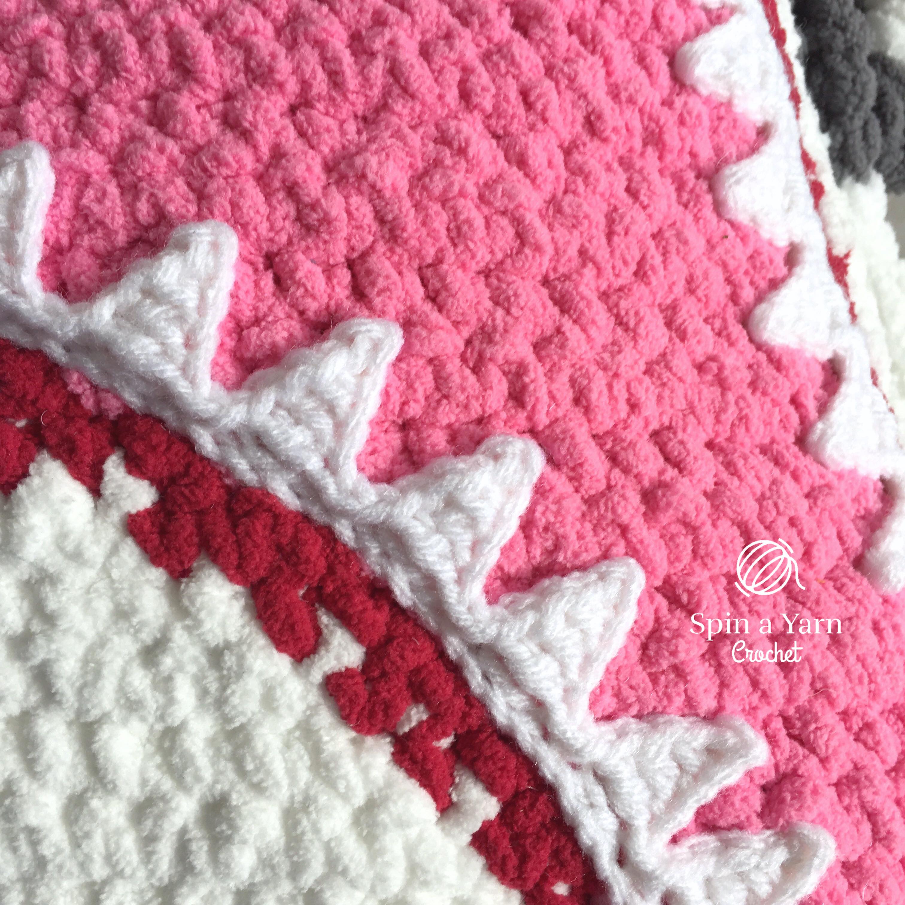 This Shark Pillow is made with Bernat Blanket yarn making it giant and (counter-intuitively) super cuddly! It would make the perfect body pillow for your shark-loving kiddo, friend or family member (or for you! Treat yo’ self!)