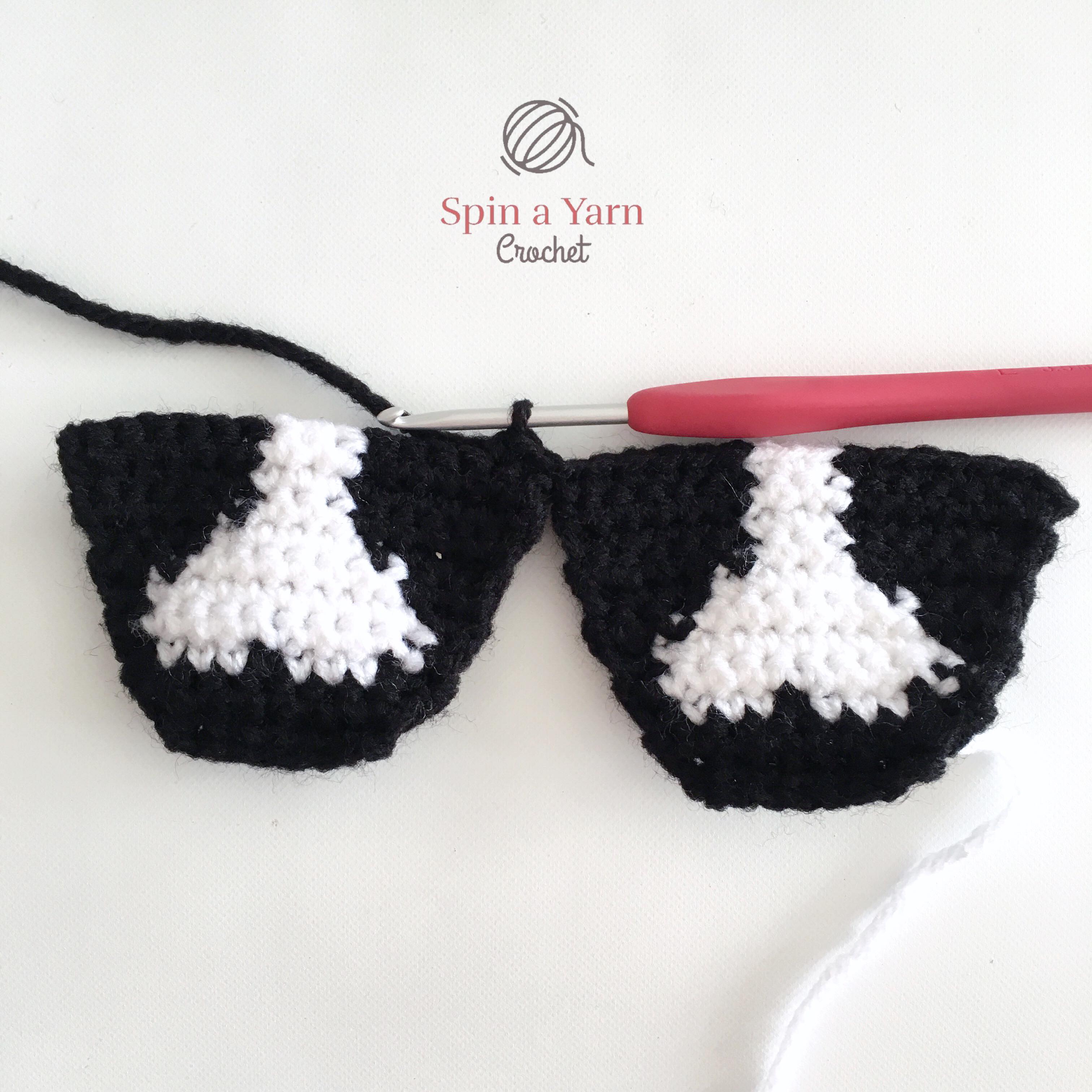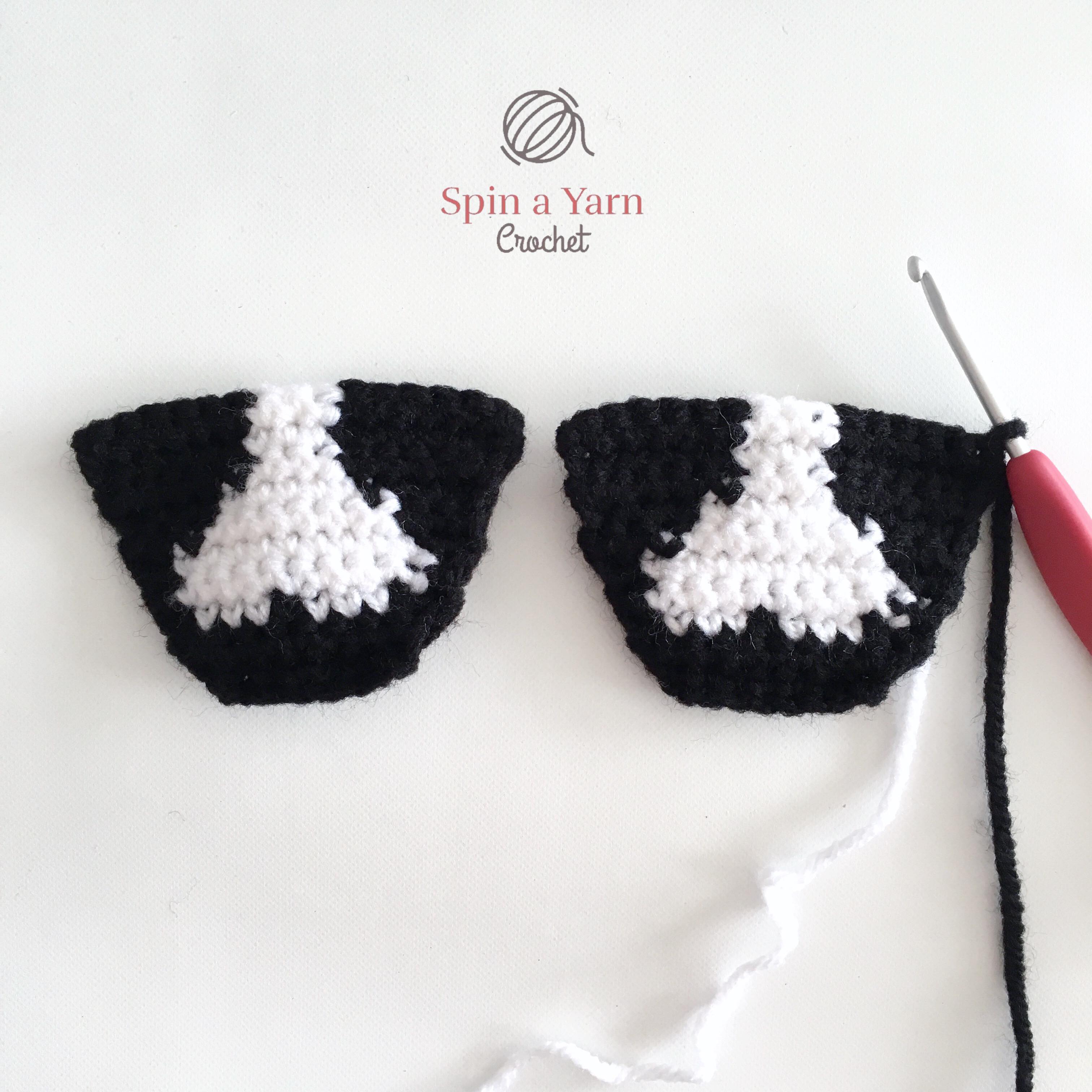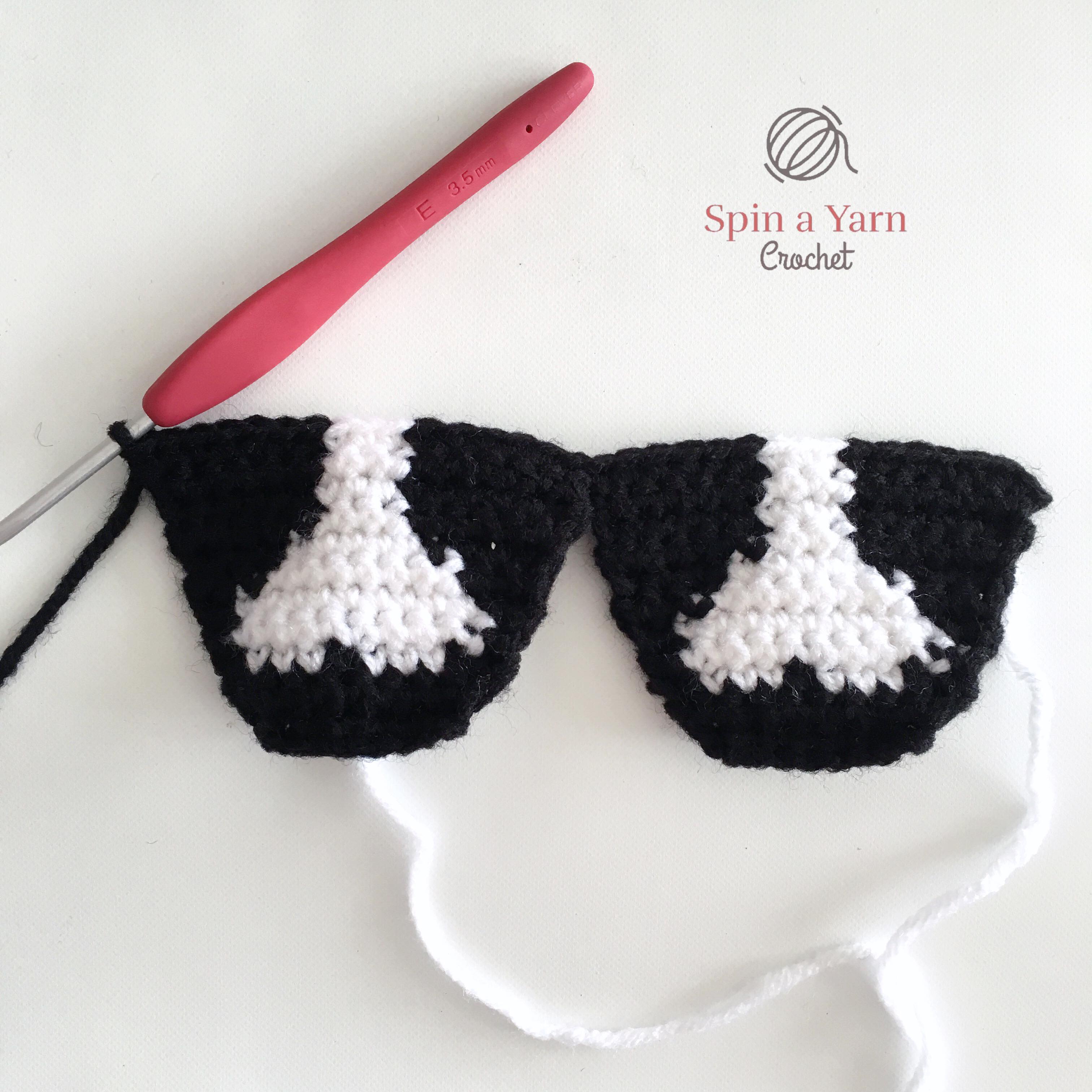 Use a 3.5mm hook and start with black yarn. Ch 1 and turn at the end of each row.