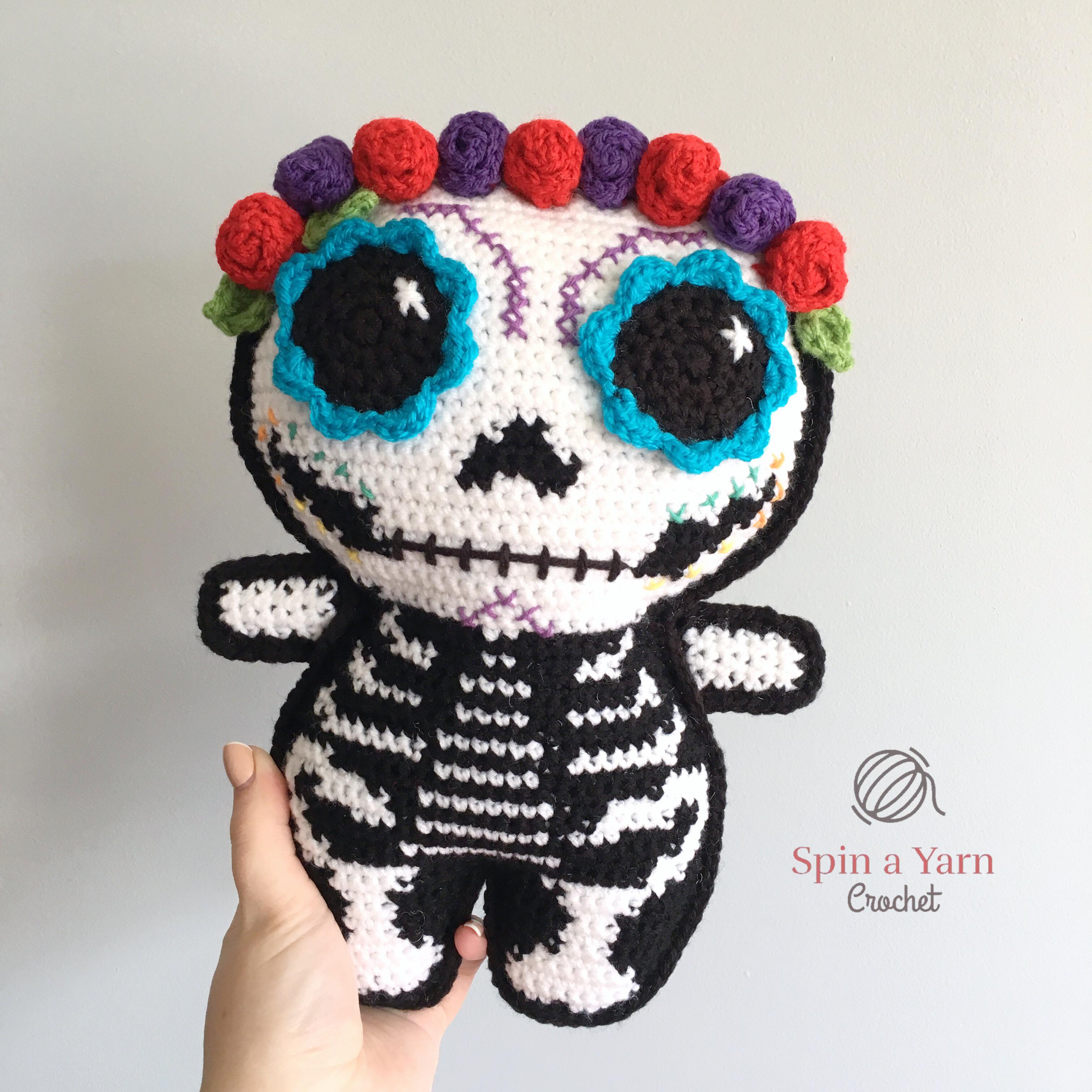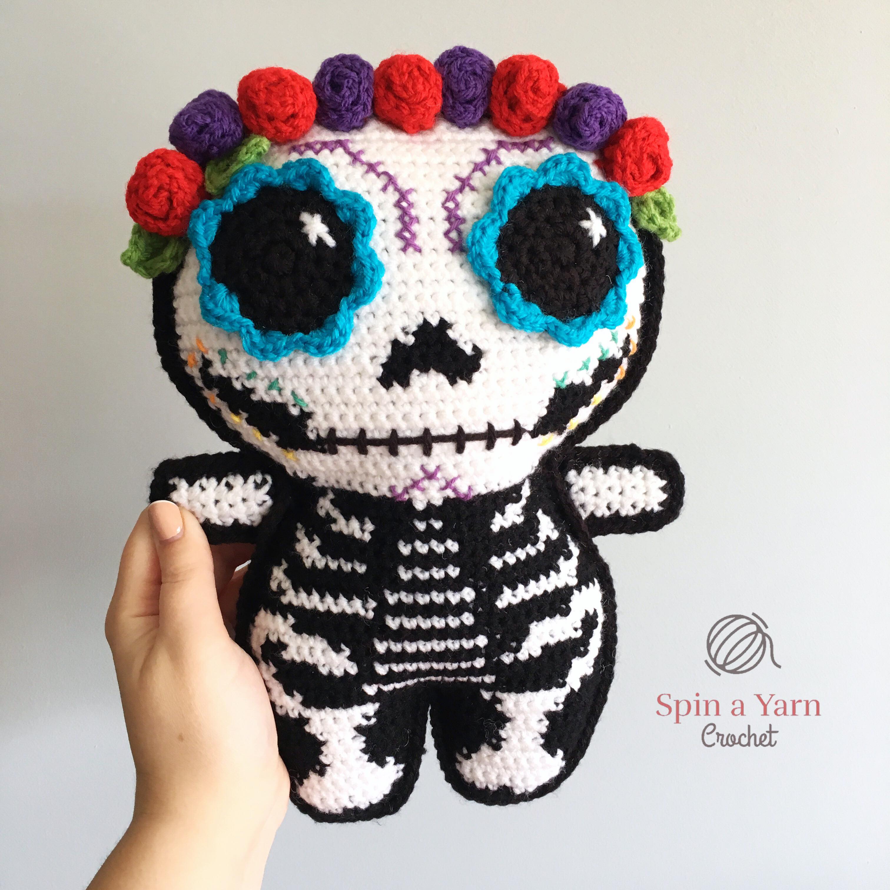 That being said, if you are wanting to make a skeleton amigurumi for Halloween, you can totally make this pattern and leave off (or add on!) as many details as you want to turn this sugar skull into a spooky skele-gurumi!