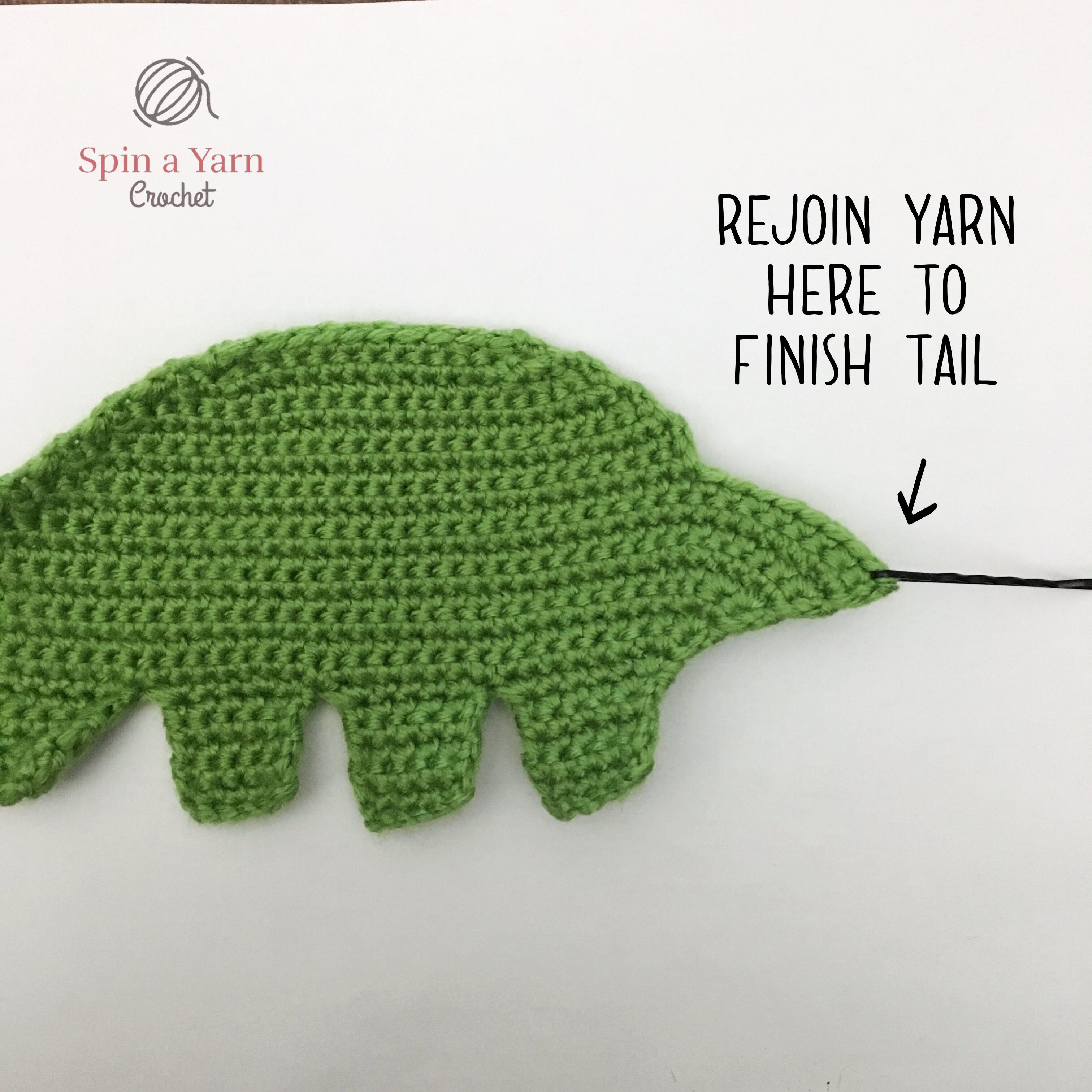 Now we will finish the back (we’ll go back to finish the tail later). You will only be crocheting part way across the next row before chaining and turning.