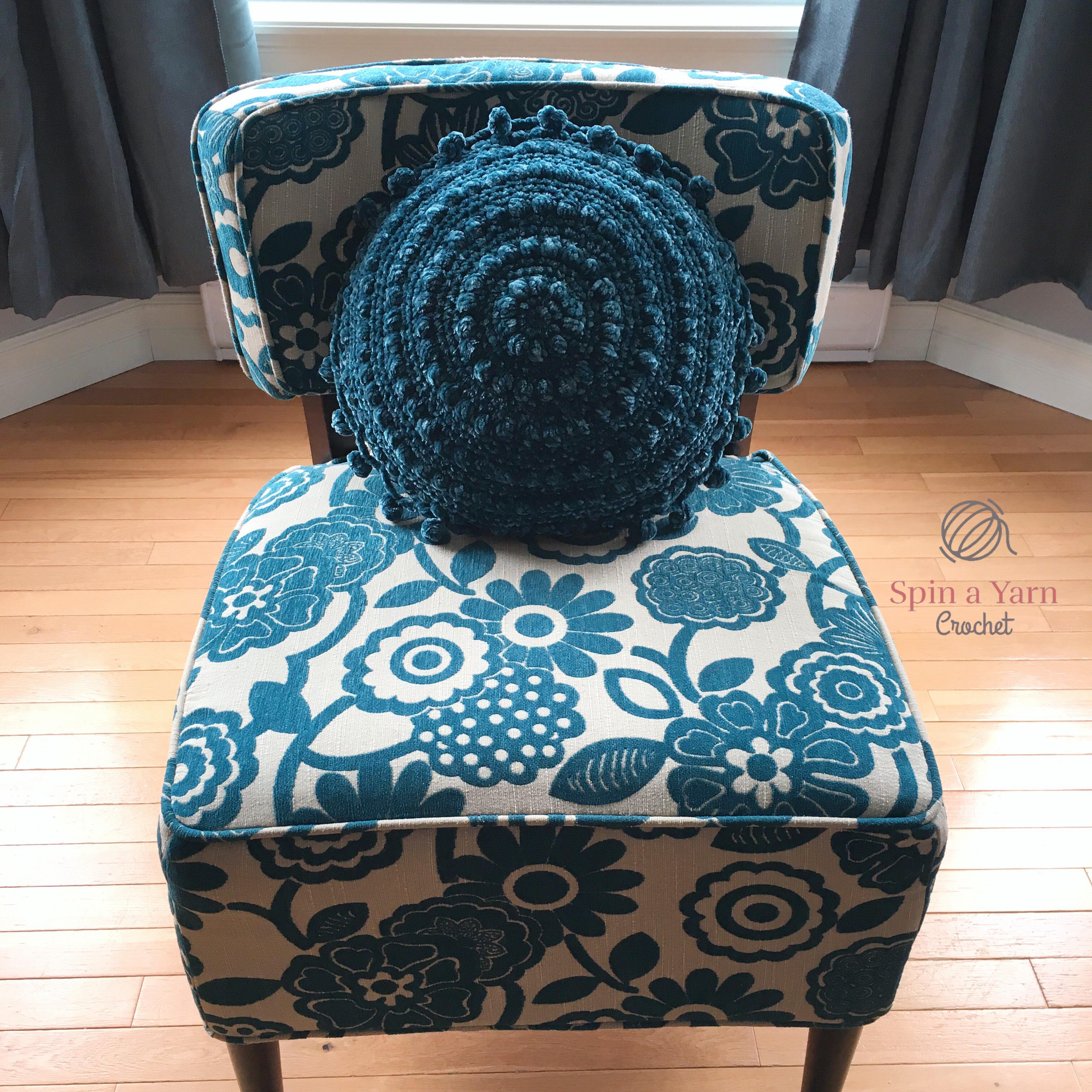 The whole pillow was made with less than one 300g skein of yarn. I love one skein projects! Since I bought 2 skeins, I’ll have to think of something fun to make with the other skein. Suggestions welcome!