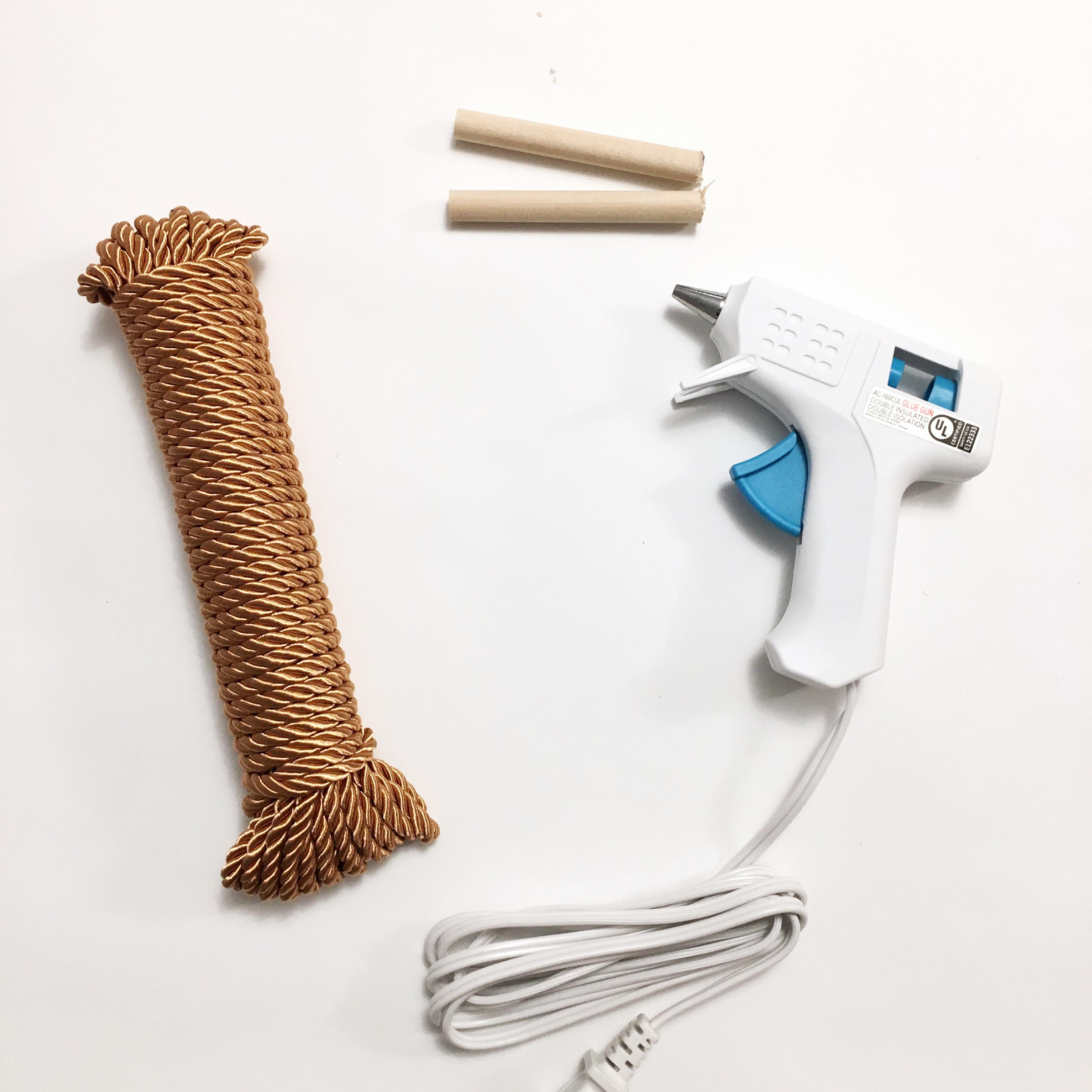 I took a trip to my local Dollarama (a dollar store chain in Canada), and found some silk cord. Perfect! The silk cord is shiny and luxurious, and comes in so many gorgeous colours. I had a really hard time choosing which colours to go with for each pumpkin. I decided on a dusty rose/blush for the grey velvet pumpkin and a lavish looking bronze for the black velvet pumpkin (I really struggled with whether I should give them matching pink stems! But I’m glad I went with the bronze for the black one because it looks so lush!).