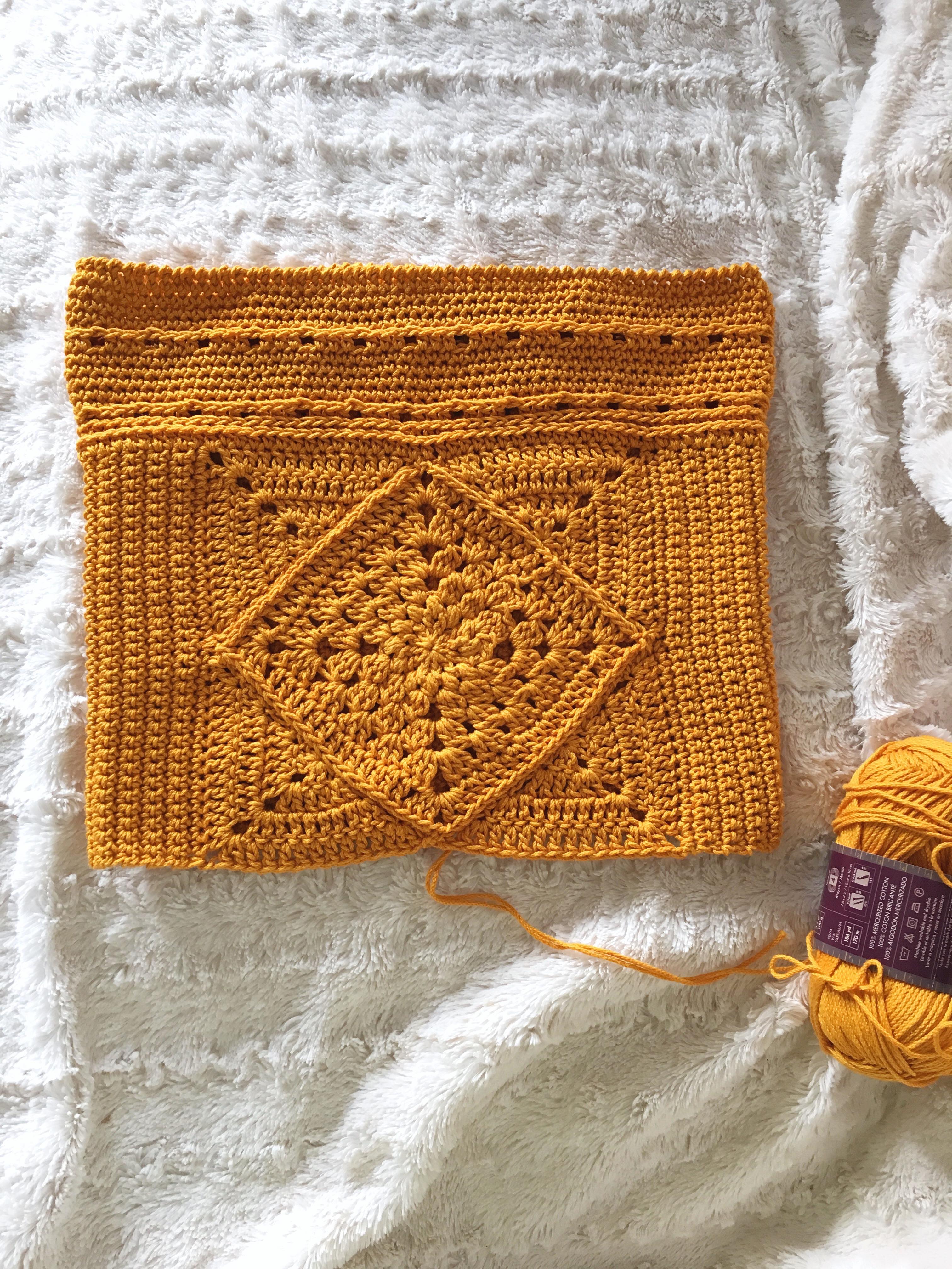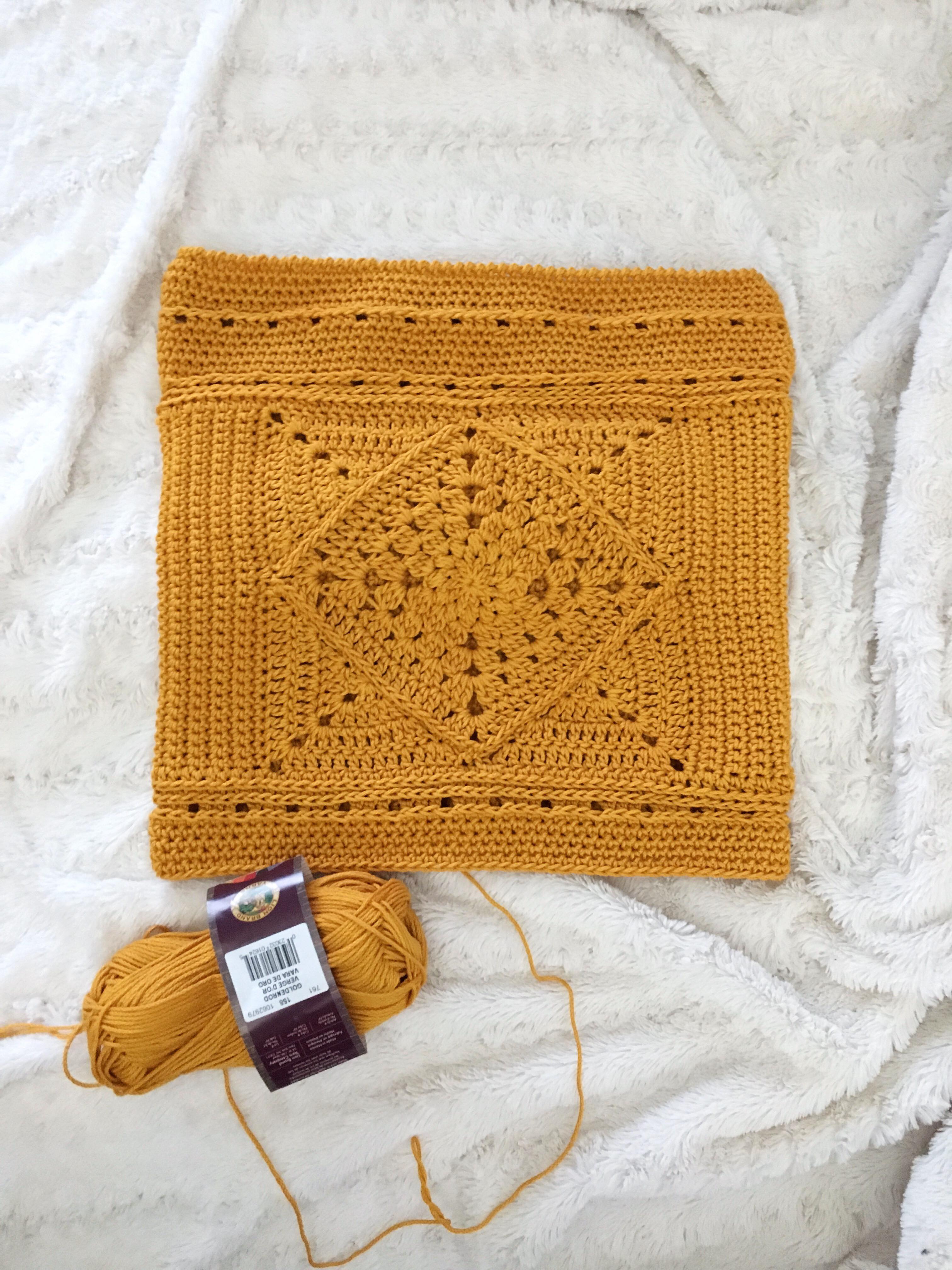 Speaking of, let’s talk yarn next; the pattern uses Lion Brand’s 24/7 Cotton which is such a perfect choice for this project. I had never used 24/7 Cotton before this project and totally fell in love! It’s a dream to work with and I can’t wait to use it for more projects in the future. The mercerized cotton gives it a beautiful sheen and incredible stitch definition. I did find that the yarn was more prone to kinking, which just meant I had to give it a few more tugs than usual while working with it, but it really wasn’t an issue. There was no splitting whatsoever, which you often see with non-mercerized cotton yarns. I made my bag in the colourway Goldenrod (but there are so many gorgeous colourways so if you plan on picking some 24/7 up, have fun with that agony).