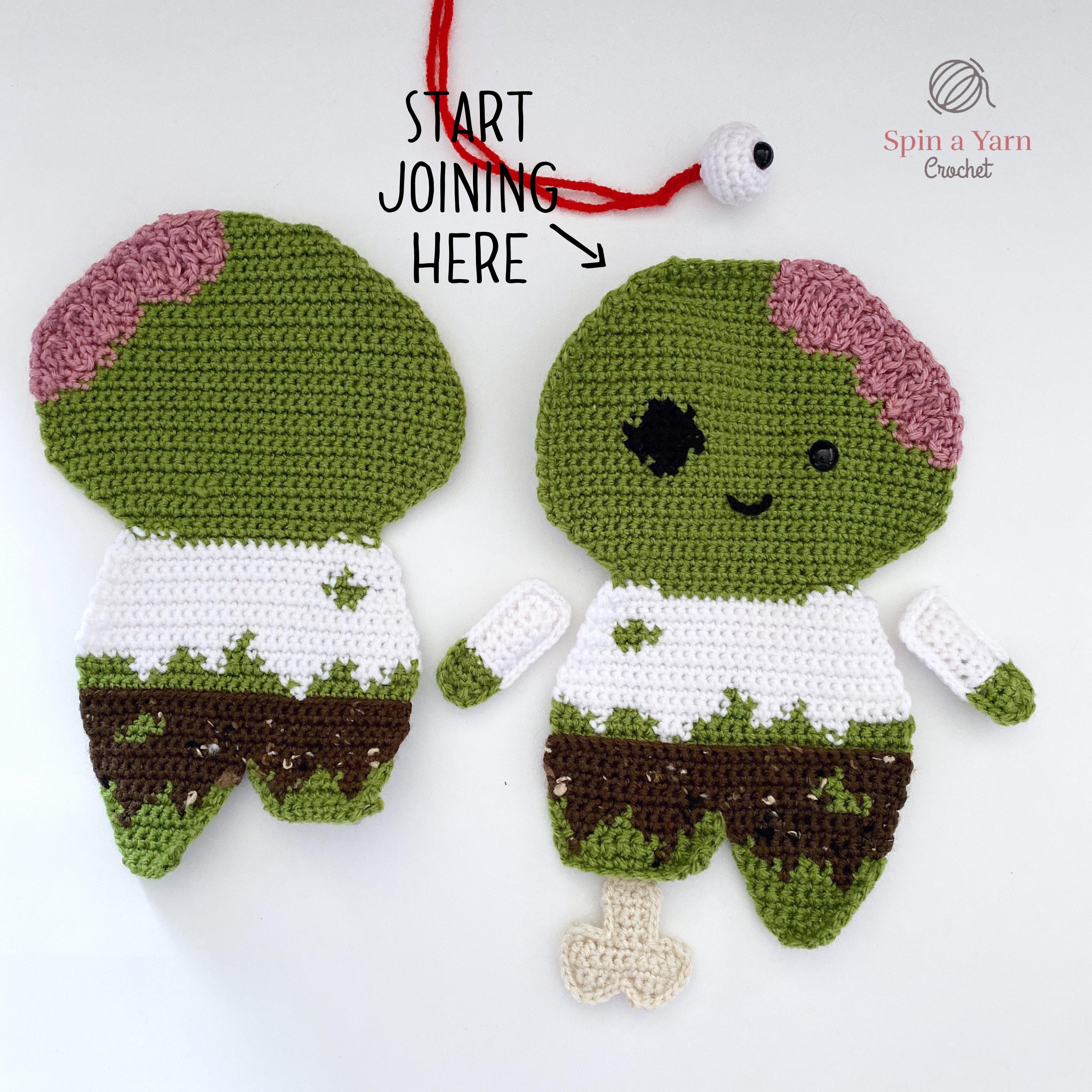 **Make sure the front of your zombie is facing you as you crochet around the outside of the piece.**